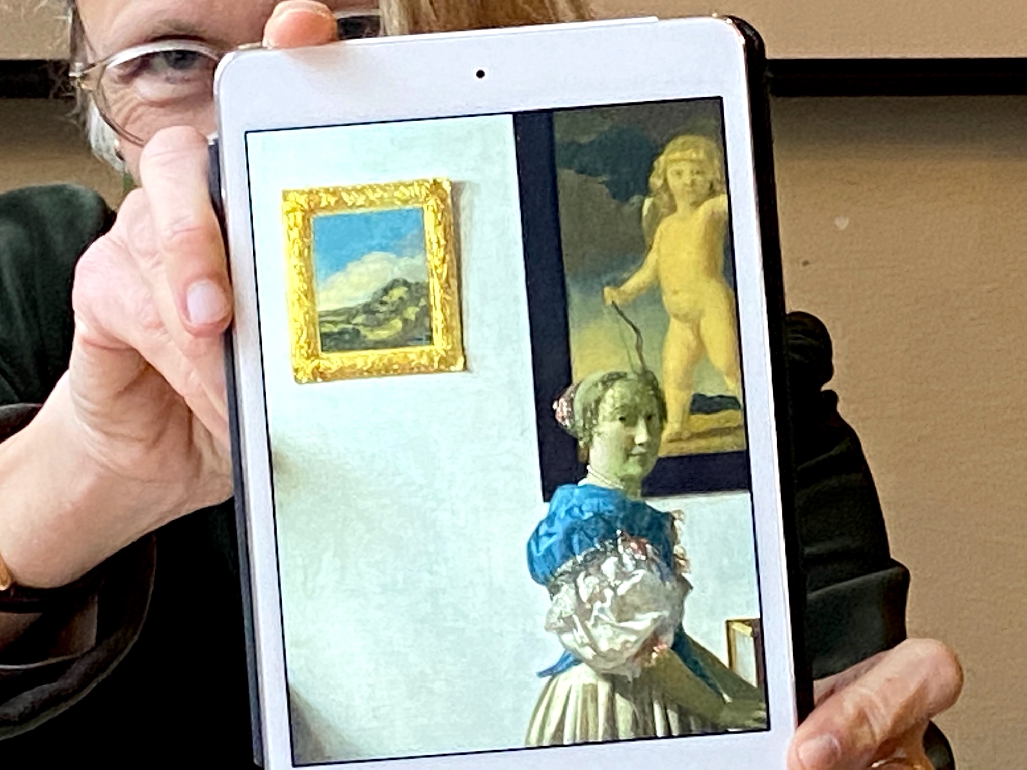 Selbst beim “Tatort” hätte man jetzt Verdacht geschöpft: Vermeer malte keine “leeren” Hintergründe. Und so nahmen sich die Restoratoren aus Dresden das Werk der Briefleserin noch einmal vor und siehe da, Stück für Stück legten sie den Liebesgott frei. Was für eine “verrassing!” Die Übermalung lag auf dem Firnis, war also nicht von Vermeer selbst vorgenommen, muss jedoch vor dem Ankauf 1746 geschehen sein.