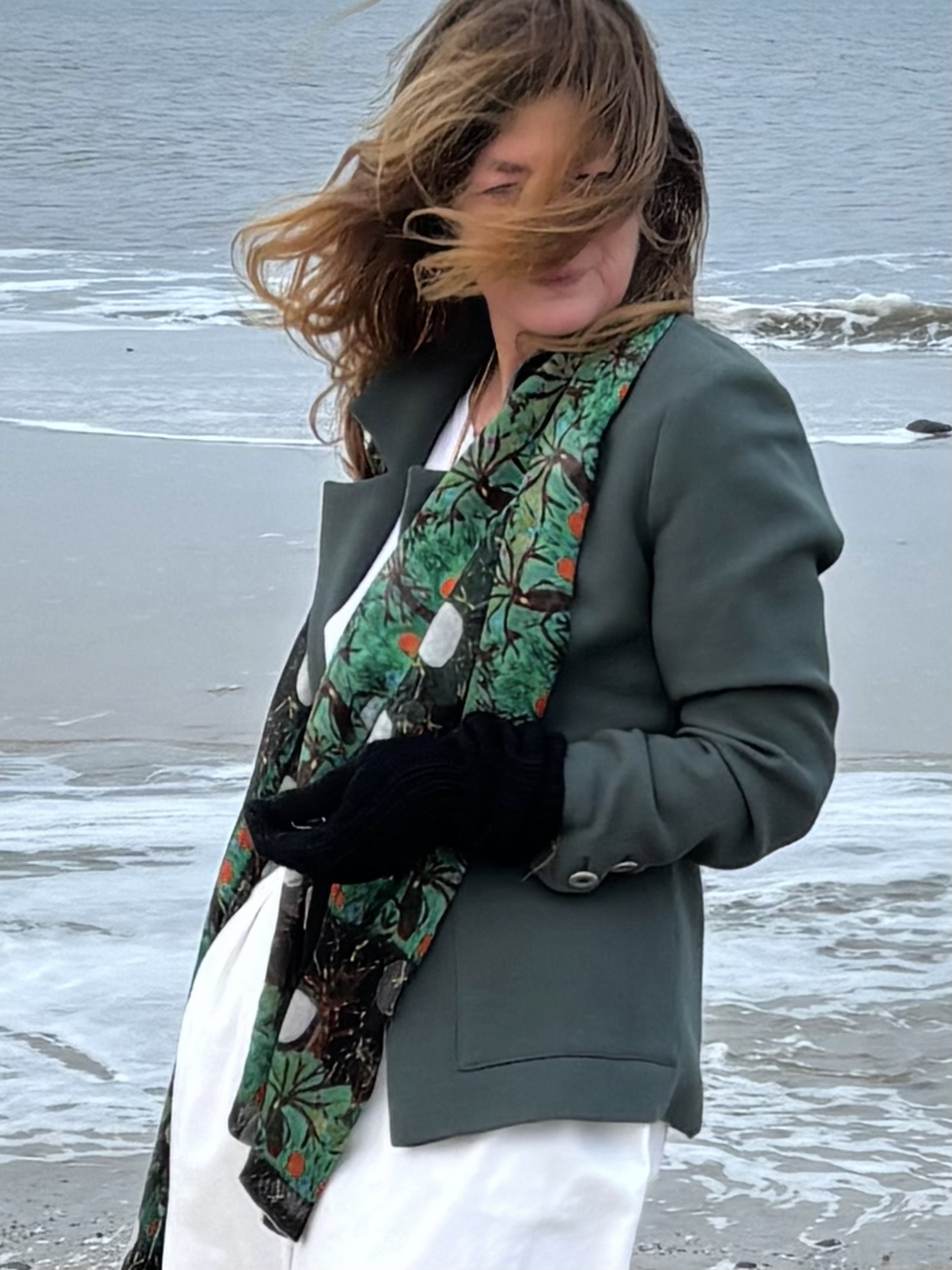Wir sprechen über unsere Zusammenarbeit, wie sich meine Ideen in Prototypen mit subtiler Passform und Silhouette verwandeln, die nun individuell angepasst werden können. Hat jemand besonders lange oder besonders kurze Arme, sollte es in der Taille enger oder weiter sein und und und. Made to Measure ist das Stichwort dazu.