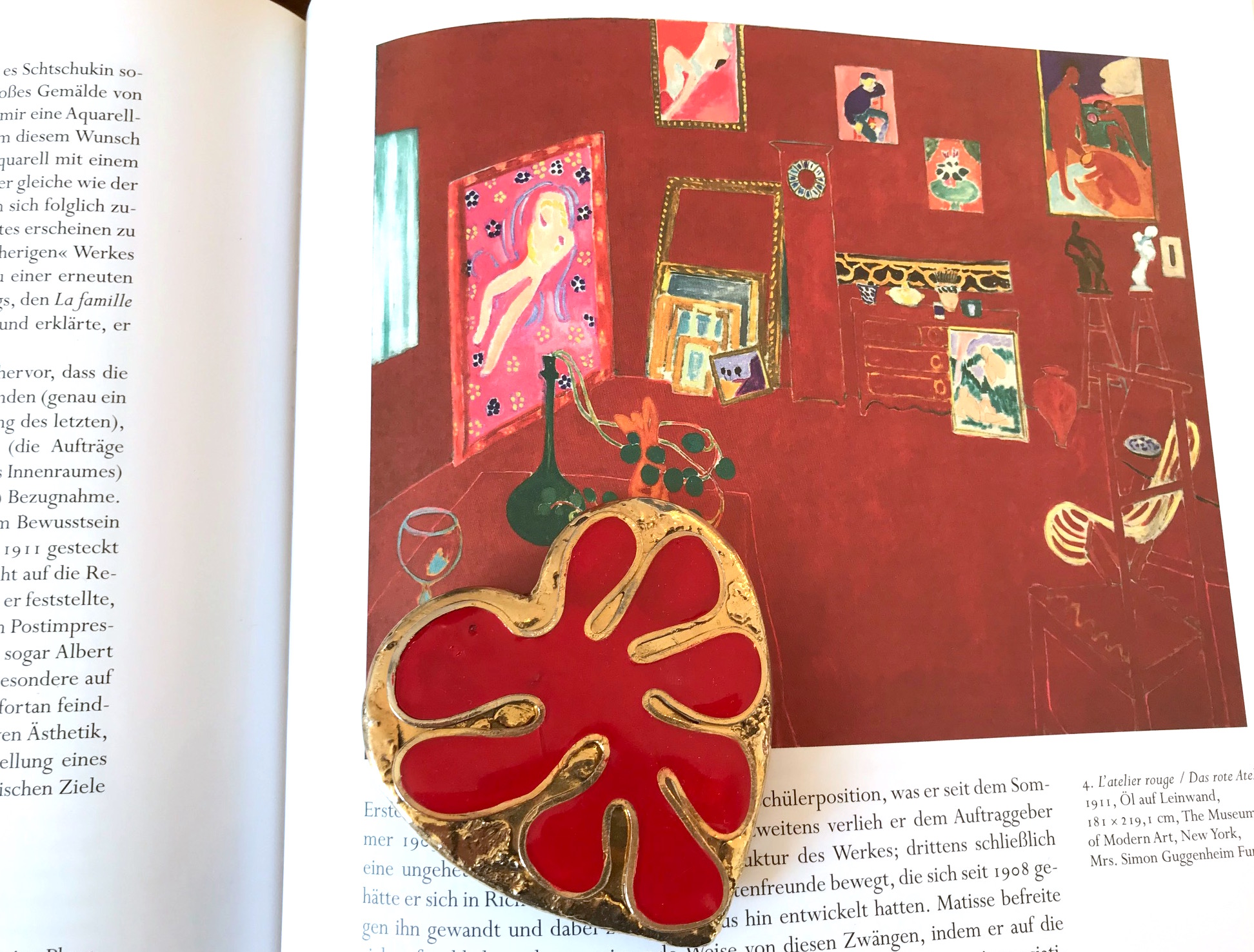 Abb. Henri Matisse, ‘L’atelier rouge, 1911. Dazu Yves Saint Laurent “Matisse” Vintage Brosche.