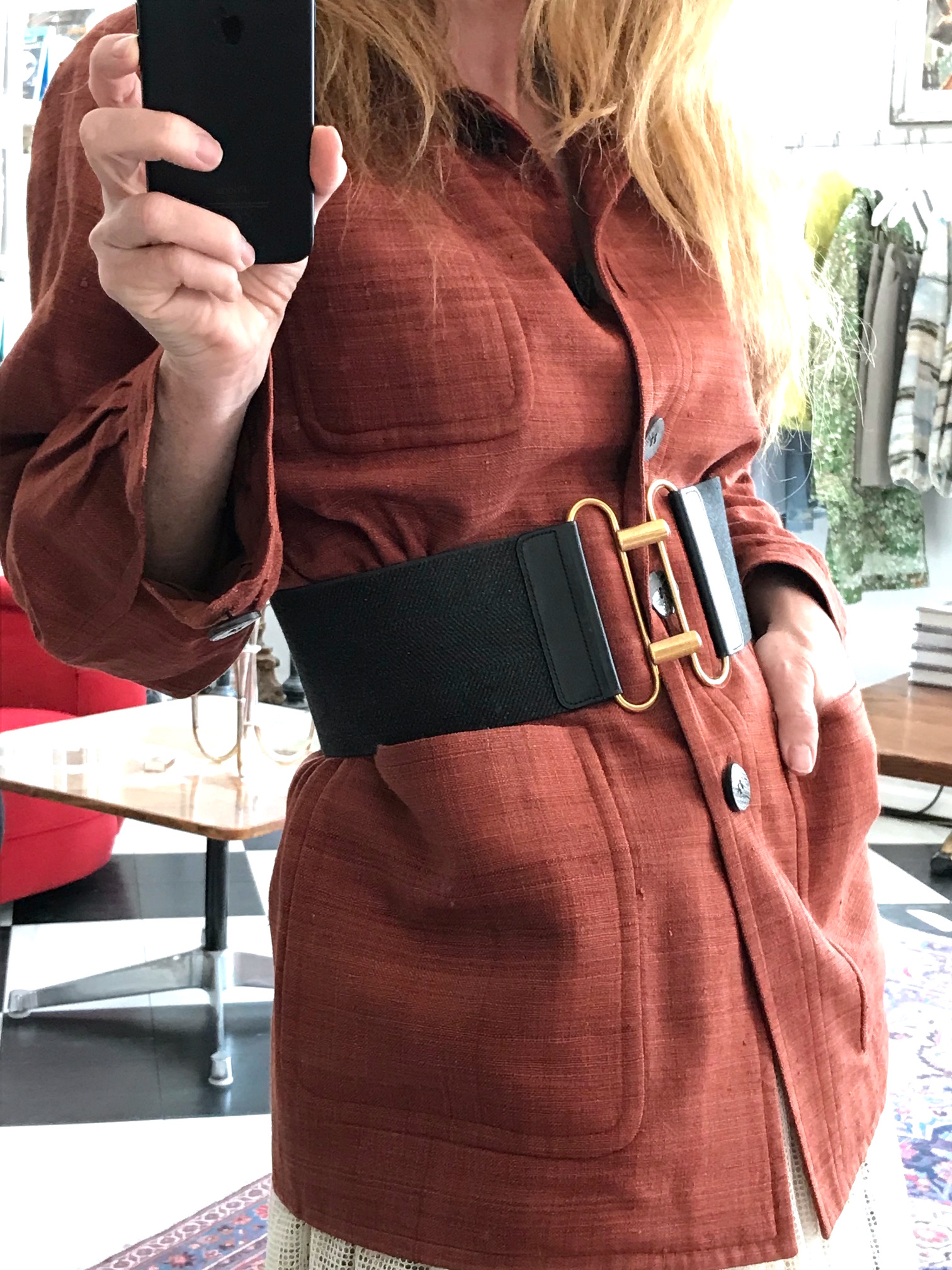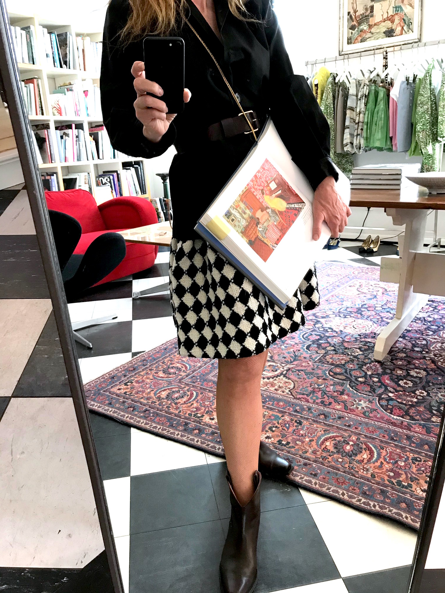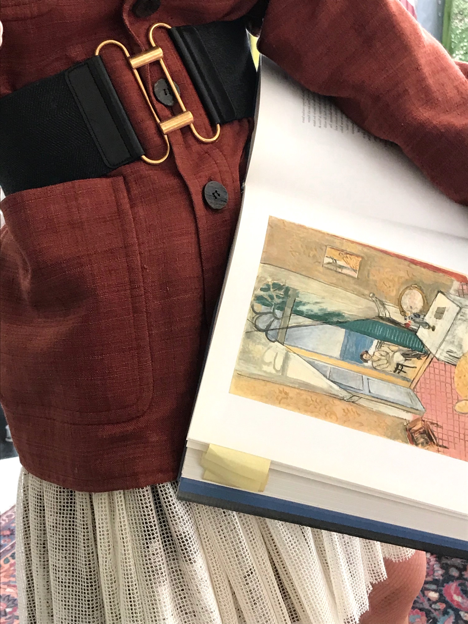 Henri Matisse, Le boudoir, 1921. “Malerkittel” Yves Saint Laurent, 1970er (€ 550), Rautenrock (€598), Tasche Roberta (€680), Vintage Ledergürtel dunkelbraun (€ 189).
