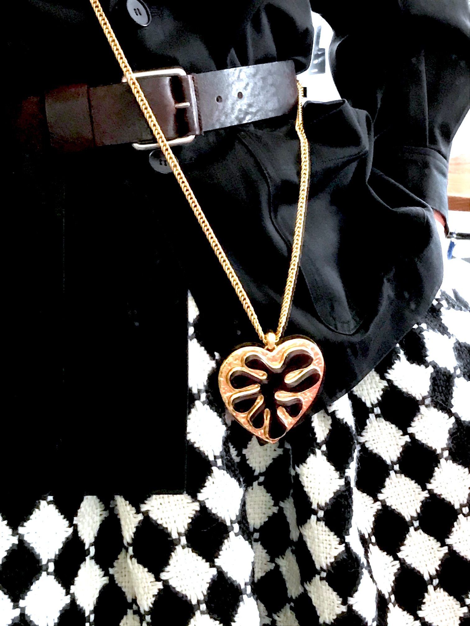 Abb.: Henri Matisse, Pianiste et joueurs de dame, 1924, Malerkittel Yves Saint Laurent, 1970er (€ 550), Yves Saint Laurent Kette Matisse (€ 950), Rautenrock (€ 598), Vintage Ledergürtel dunkelbraun (€ 189)