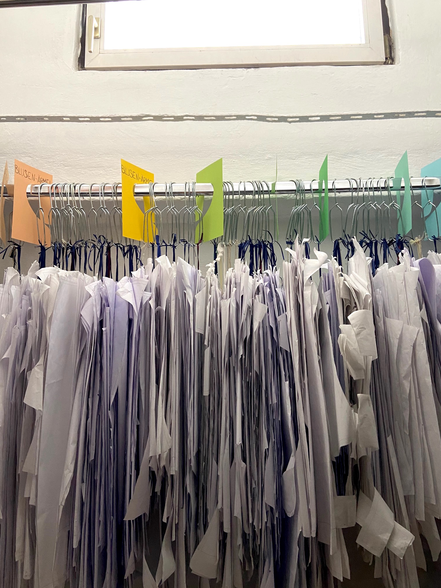 Wo Monique ist, ist Frieden und arbeitssame Konzentration, während es bei mir in meinem Inneren ständig braust. Mehrfach laufe ich die Treppe rauf und runter, um ein wenig im Atelier zu verweilen, die ruhige Atmosphäre zu atmen, während sie an dem Blusen-Prototypen arbeitet.