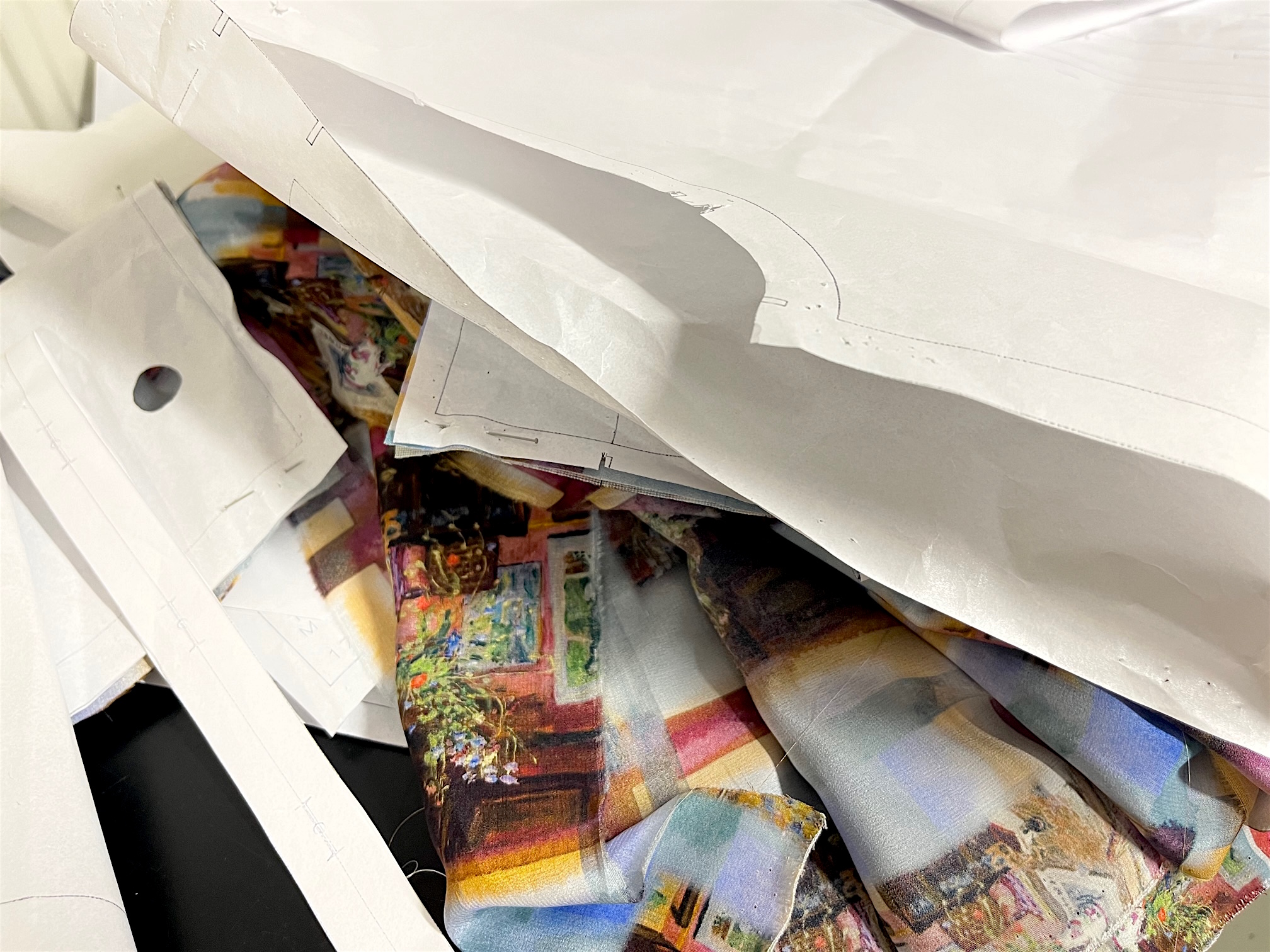 Es ist Dienstag, der sich eher wie ein Montag anfühlt. Das Internet ist aus irgendwelchen Gründen zusammengebrochen, vor der Haustür brummt die Rohrsanierung, die Bügelanlage zischt und droht zu explodieren. Melle näht trotzdem unverdrossen unten an dem Proto für die neue Basic Bluse: Bonnard mit den Karostreifen. Schön wird sie, aber viel ist noch nicht zu erkennen.