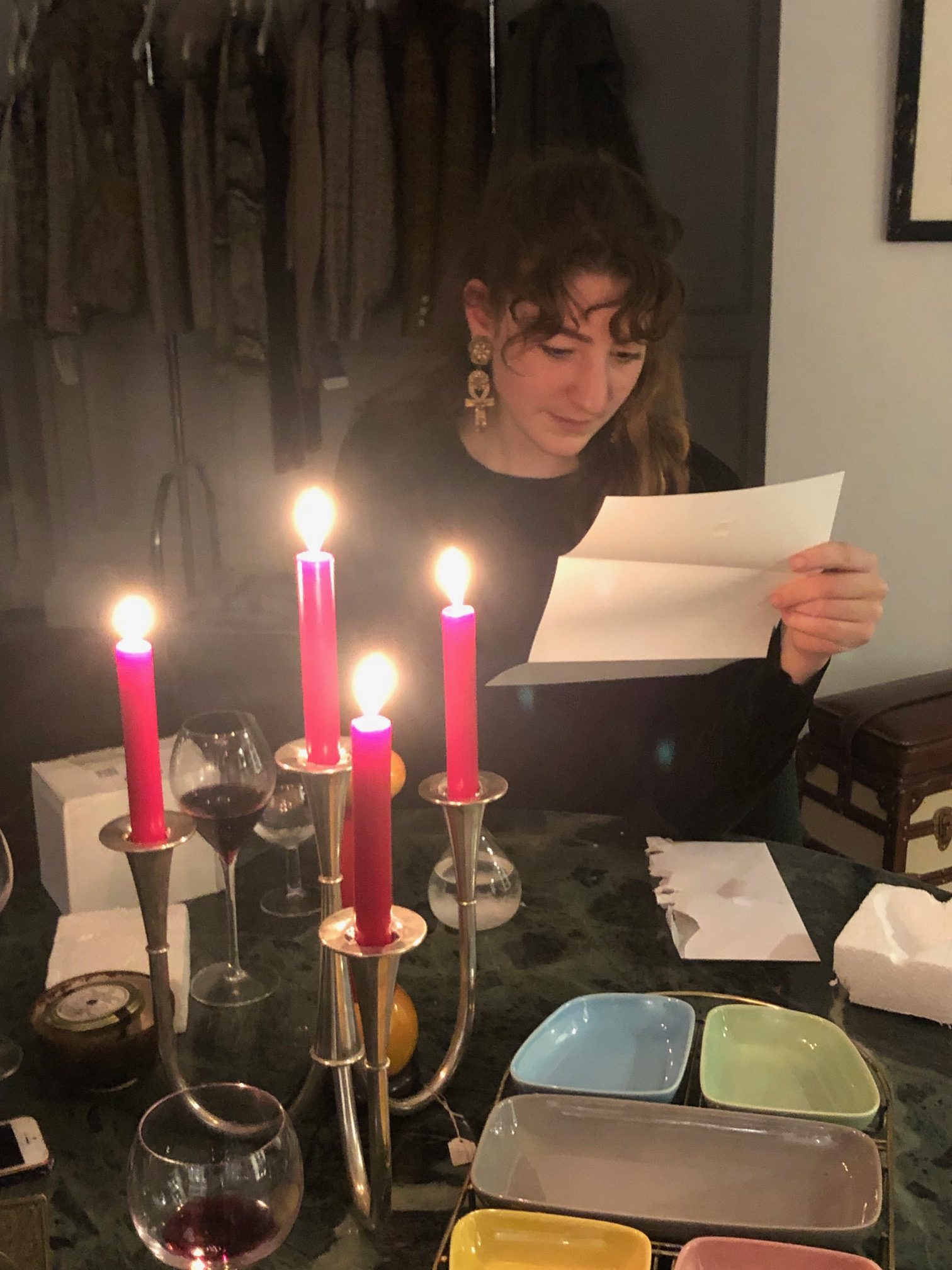 Es gab die letzten Adventskalender Briefe an die Töchter mit der No.24, eine Vintage Weste mit witzigen Knöpfen aus den Anfängen von Moschino, gebraucht, ein Blouson von Yves Saint Laurent, ebenfalls gebraucht, alles natürlich ohne Verpackung, zwei neue Fotoarbeiten meines Mannes in altes Papier eingewickelt, das frisch getrocknet aus dem feuchten Fahrradschuppen kam, ein Sturmglas, mit dem man das Wetter erkennen kann (Erfindung aus dem 19. Jahrhundert), ein Buch von Humboldt, ein Metallkalender vom Flohmarkt, ein Bastelwürfel, an dem mein Intellekt versagt, soviel steht jetzt schon fest. Toskas Geschenke liegen noch beim Bouquinisten in Paris, erweckten aber lebhafte Neugier…
