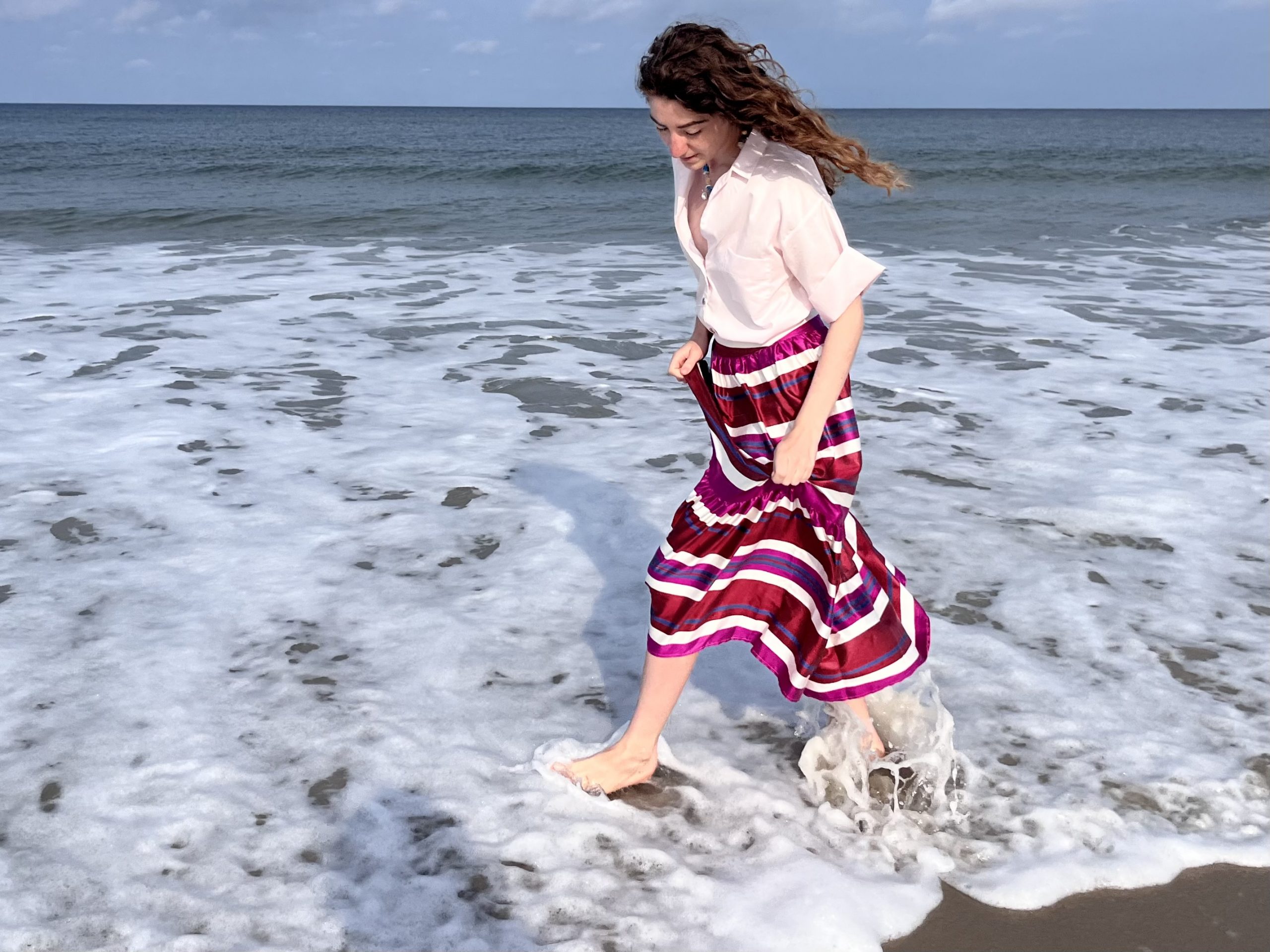 Nun sind Toska (27) und ich in die neuen Röcke geschlüpft, diese Leichtgewichte, die in jeden Koffer passen und wie ein kleines Streifen-Nichts die Beine umspielen.