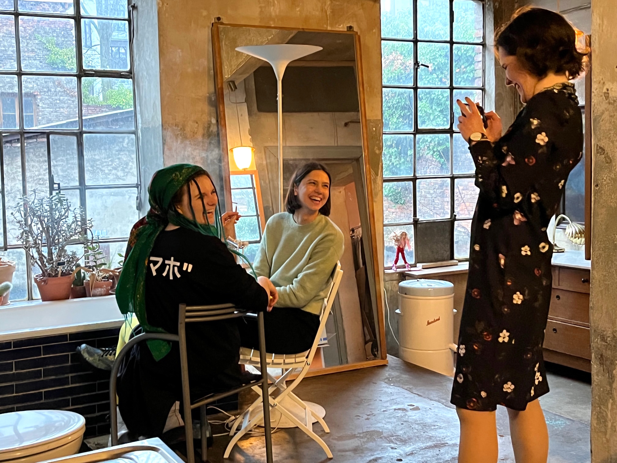 Es dauerte zwei Wochen, bis die beiden jungen Frauen endlich herauskamen aus dem Grauen, mit Nächten im Keller und im Luftschutzbunker, nicht durchschlafen, Todesangst haben. Es bleibt die Ungewissheit, was mit ihren Familien und den Freunden passiert. Regelmäßig werden auch an diesem Abend die Handys gecheckt, ob eine neue Nachricht da ist.