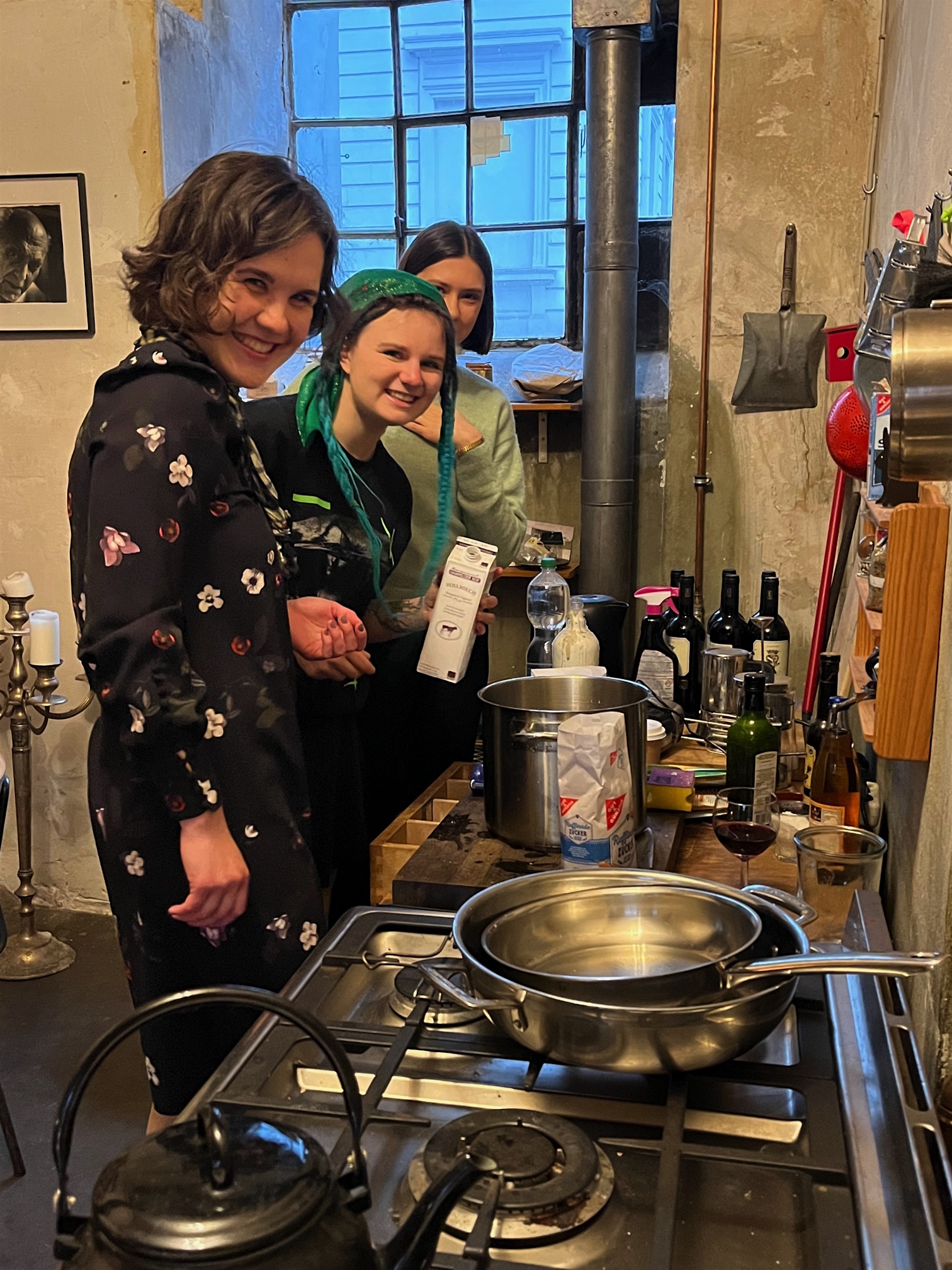 Sofia (rechts) ist schon eine Weile in Hamburg und studiert Orgel an der Hamburger Musikhochschule. Sie hatte Thomas gebeten, ob er für die Freundinnen aus einem Vorort von Kiew eine Unterkunft hätte. Deswegen bin ich wieder in den Tempel gezogen.