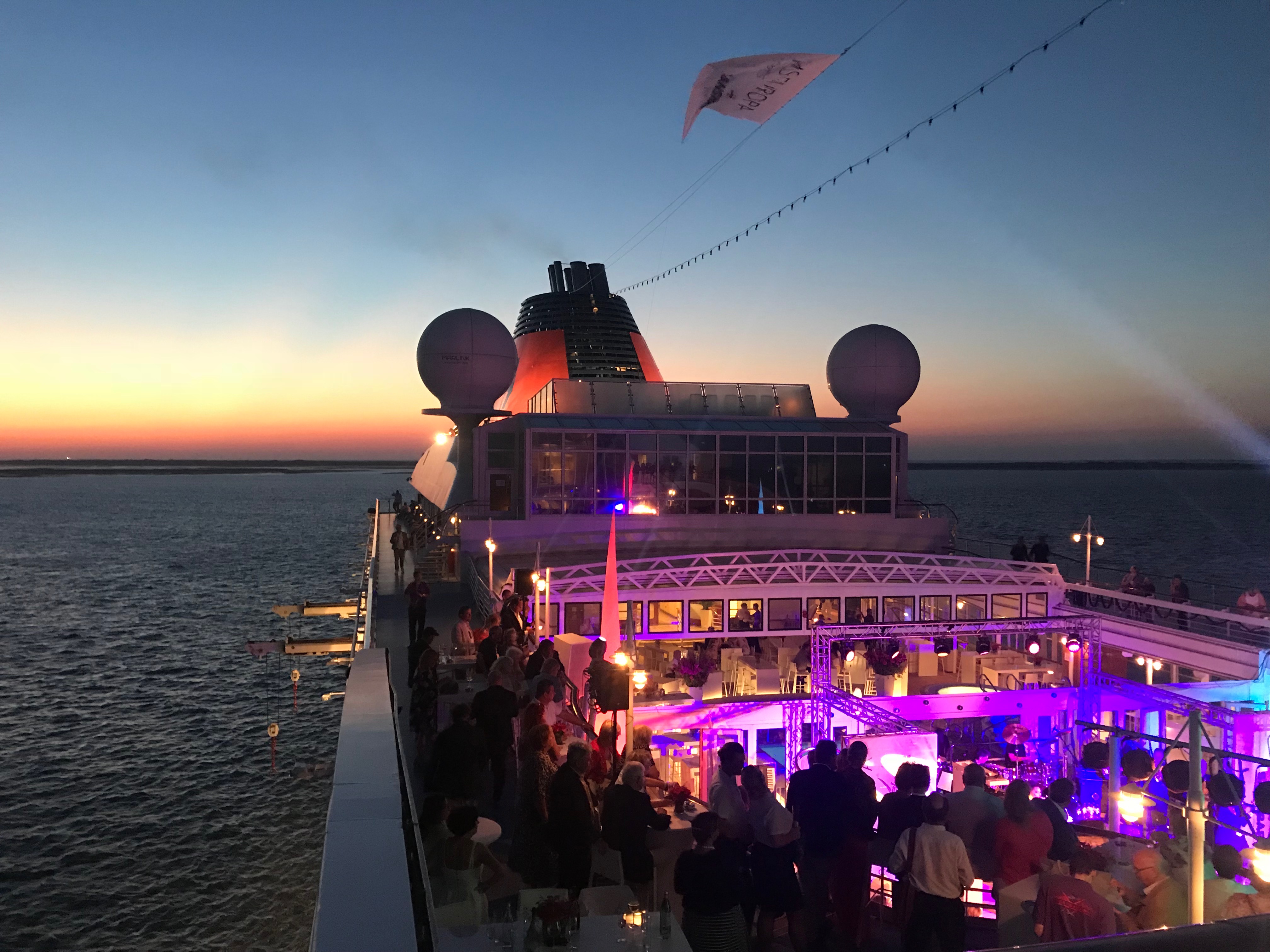 Zu den aufregenden Begegnungen verbunden mit ganz neuen Herausforderungen gehört in 2018/19 das Team von Hapag Lloyd Cruises. Ziemlich genau vor einem Jahr kam Astrid Reifferscheid, eine der VerkaufsleiterInnen von Hapag Lloyd Cruises, zu mir ins Geschäft in Kampen. Sie kaufte eine Bluse “Polar Bears in Summer” und erzählte von ihren Vorträgen, über die EUROPA 1, die EUROPA 2 und die Expeditionsschiffe. Wenig später sahen wir uns beim Gourmet Auftakt bei Manne Pahl wieder, ganz unerwartet sollte eine Freikarte von ihr über Umwegen zu mir gelangen. Am Morgen dadrauf saßen wir verkatert beisammen und vertagten ein Brainstorming zu möglichen Kooperationen.