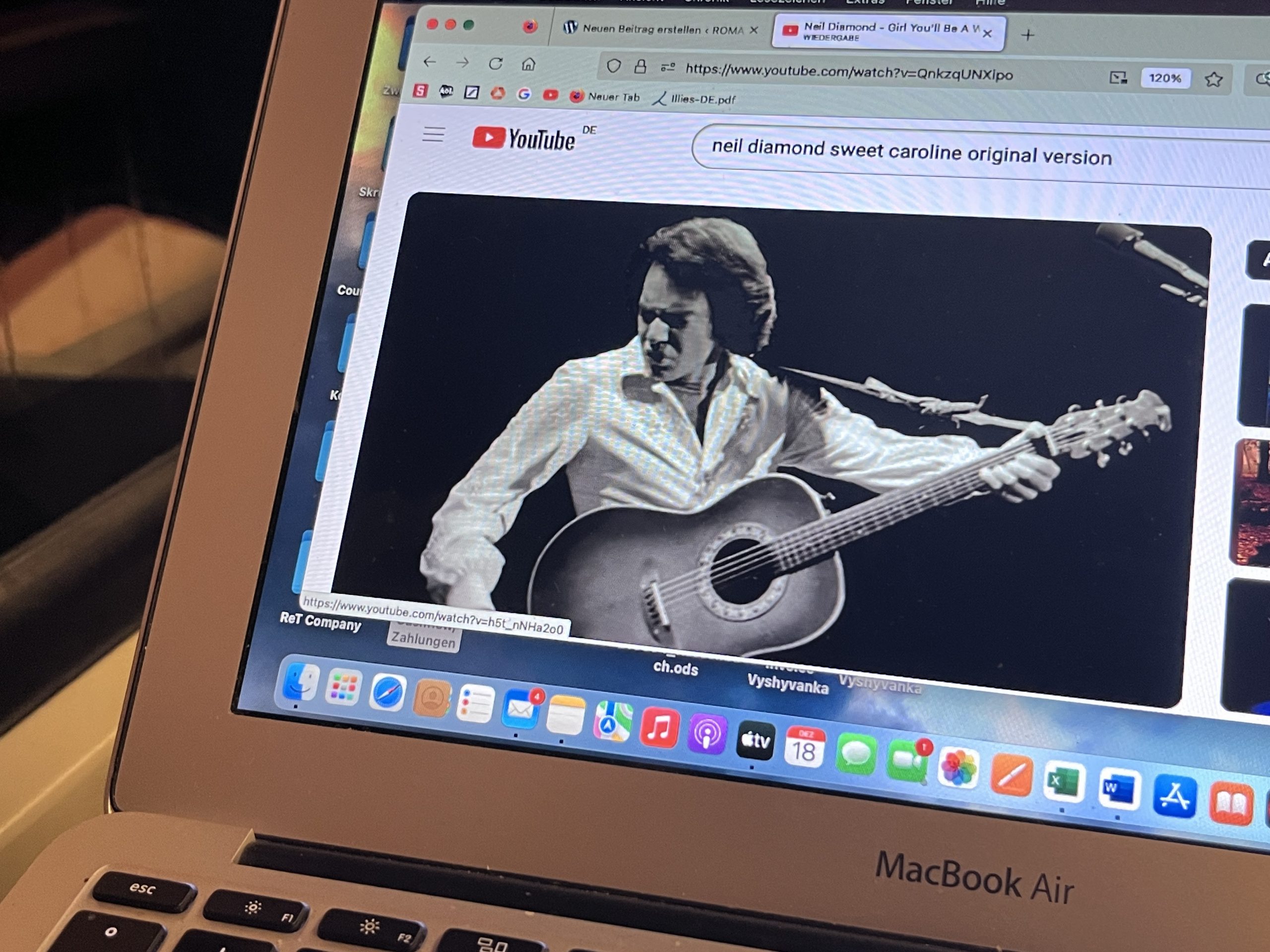 Während ich noch durch die Landschaft zuckele höre ich mich leise durch die Playlists von Neil Diamond. Flash back in meine Jugend in den 1970ern. Ich war sein absoluter Fan. Aus meinem Walkman düdelte seine Best-of-Kassette im Dauerloop: “Sweet Caroline”.