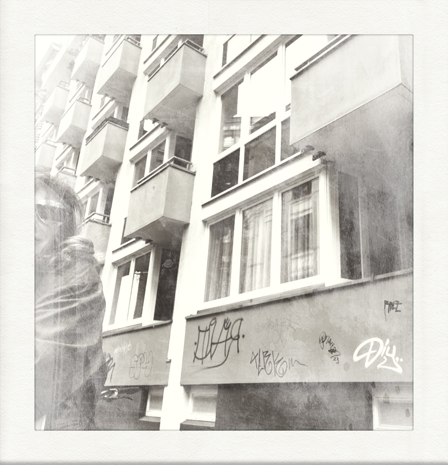 Tatort ist meine Straße, mein Gegenüber, die Mietswohnungen in der Poolstrasse, die in ihrer Tristesse zu einer Filmkulisse werden. Ich beobachte von meinem Schreibtisch aus, was dort drüben passiert, hinter den Gardinen, auf den Balkonen. Eine Leiter für einen neuen Anstrich, ein Körbchen für Frühlingsblumen. Kleine Zeichen für ein bescheidenes Glück.