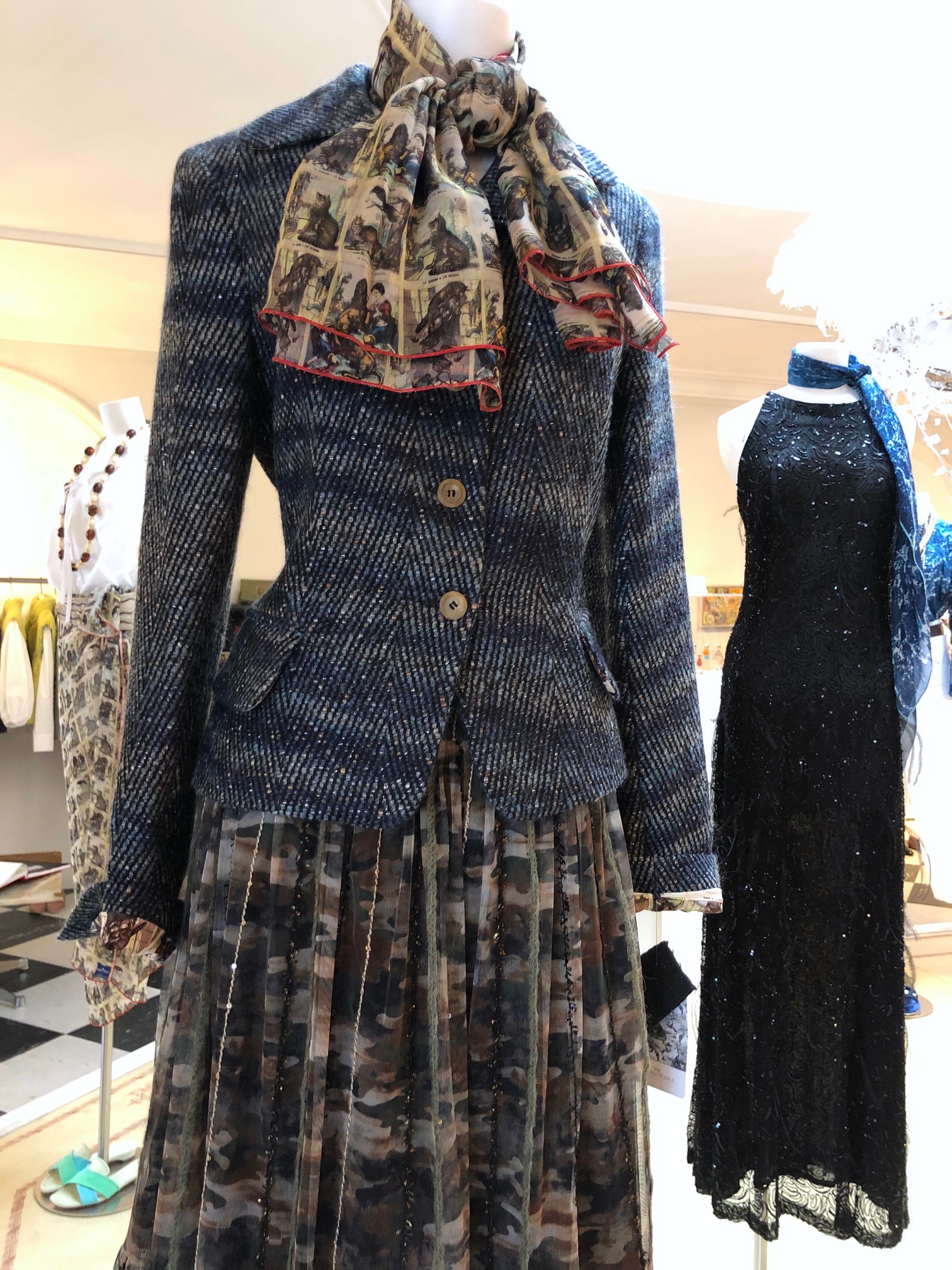Und was trage ich heute zum Welcome Apero (ab 16.00) ? Am liebsten den Camouflage Tütü, aber den reserviere ich vorerst noch für Euch. Also wird es wie immer ein Mix aus Hose, Stiefeletten, Waterscape Bluse, neuem Blazer mit Waterscape Futter und natürlich ganz viel Schmuck sein. Mein Favourite Outfit seit ich zurück bin … Lasst Euch überraschen. Toska wird auch anwesend sein für ihre Sicht der Dinge.