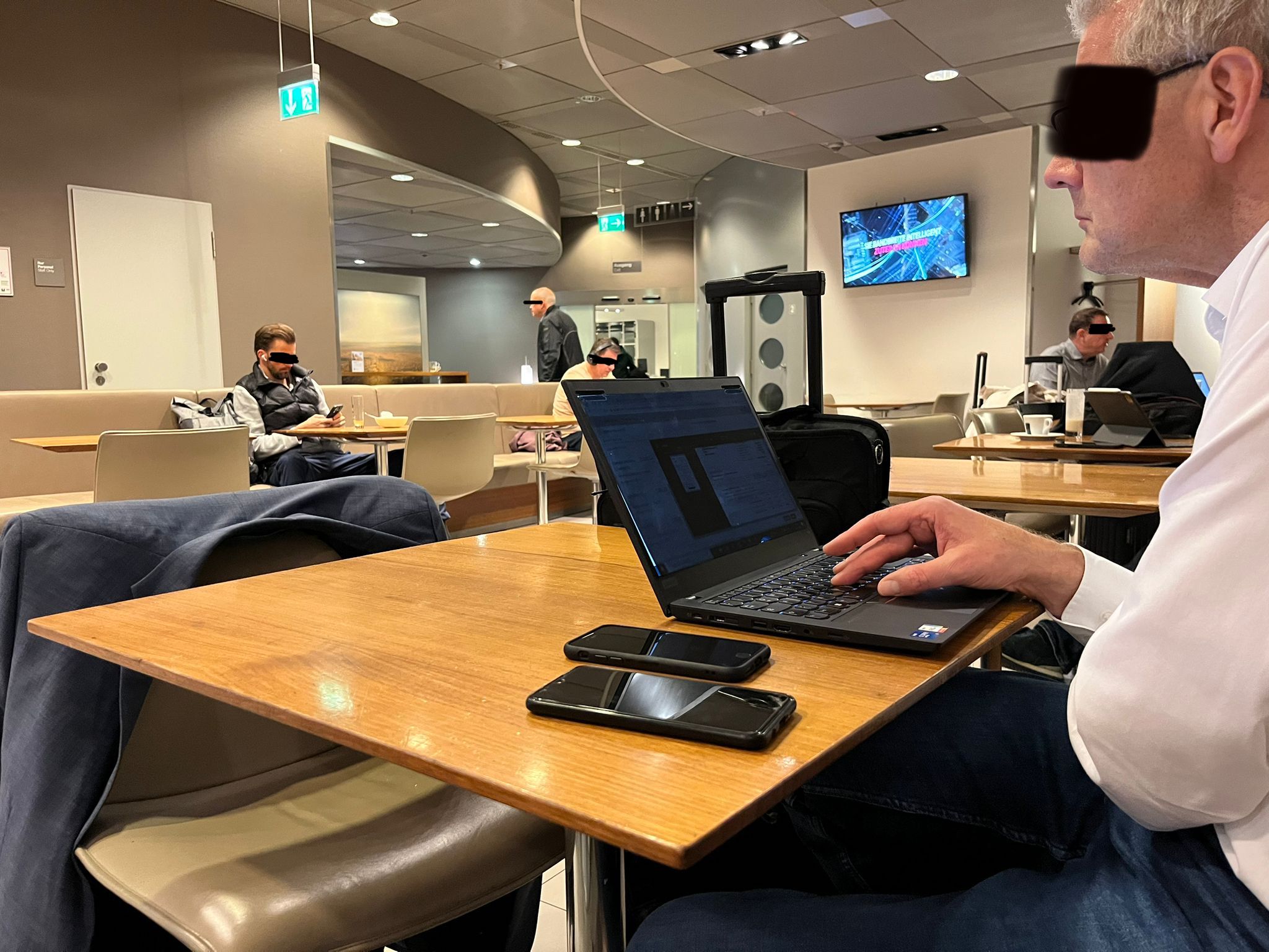 “Oh, das ist hart. Nix dazwischen“, muss ich leider konstatieren. Ernste, humorbefreite Herren unterschiedlichen Alters, die einzig und allen die Gewinn-Optimierung im Kopf haben. Kein Blick über den Tellerrand, geschweige denn rüber zu meiner klugen Freundin mit Tütü im Handgepäck.