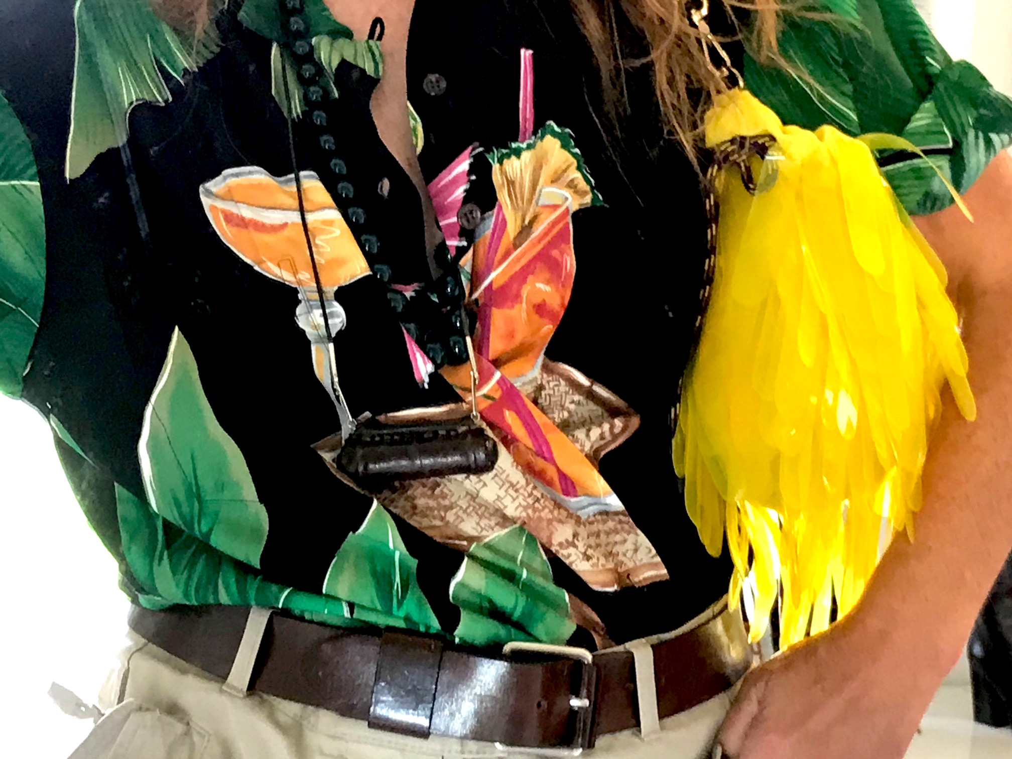 Abb: Hawaii Hemd (€ 149), Vintage Ledergürtel (€ 189), Vintage Dries van Noten Tasche (€650)