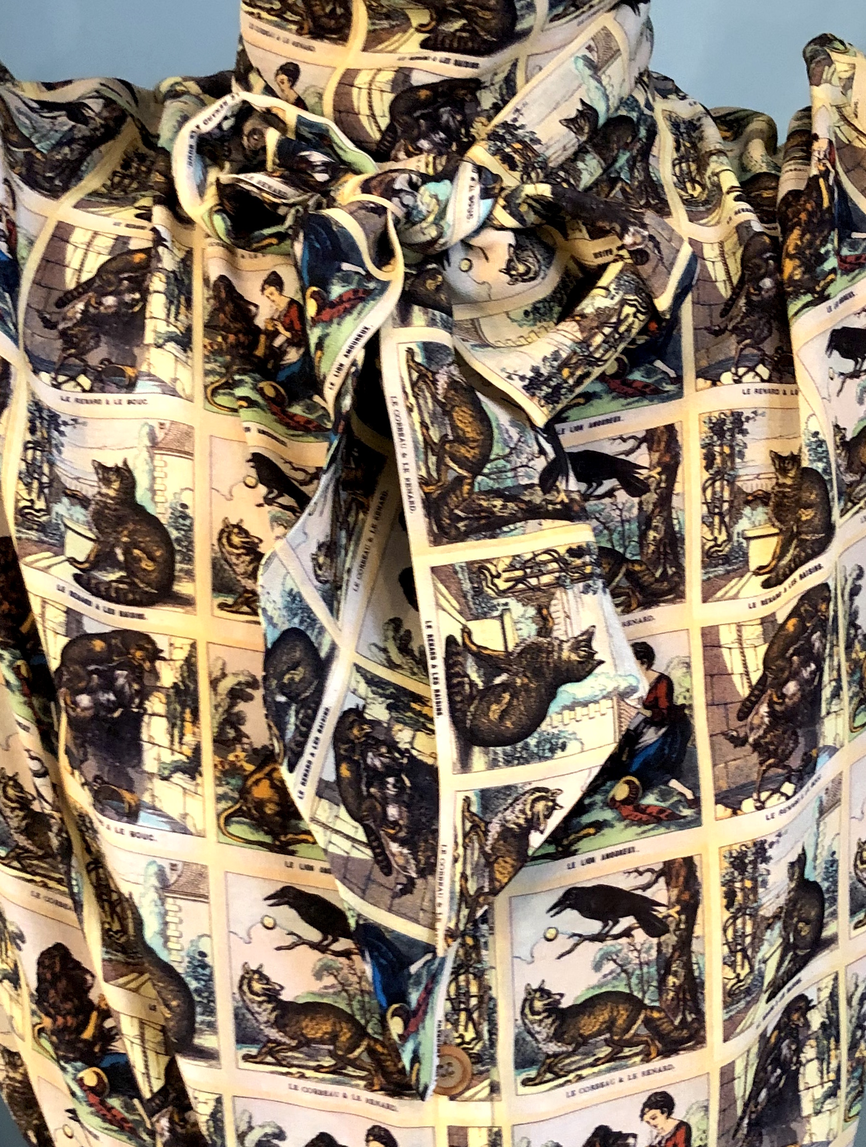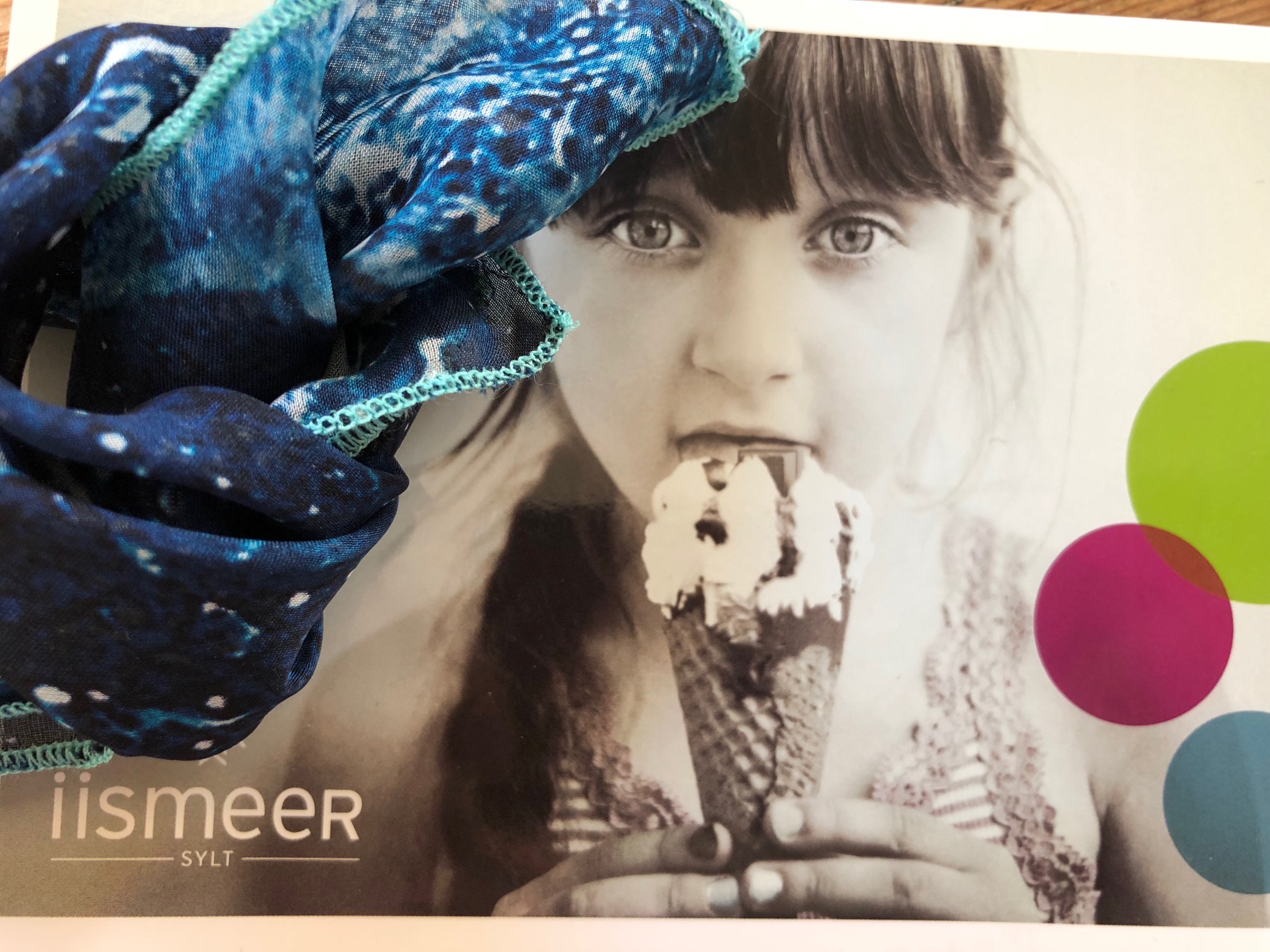 Zu kaufen gibt es auch meine Lieblingsbluse “Kinderbuch Illustrationen von Jean de La Fontaine”, die ich gestern (und vorgestern und vorvorgestern) trug. Lässig schlingt sich der Foulard um den Hals und kann hübsch und kess zur Schleife gebunden werden. Über den Crêpe de Chine muss ich kaum mehr etwas erzählen, er wärmt in der fischen Frühlingssonne und kühlt, wenn mir beim Lesen ganz heiß wird. Ganz nebenbei, war die Bluse schon in den letzten Tagen der Bestseller. Es bleiben nur noch wenige aus dieser kleinen Edition. Bluse Illustration, € 398. Und bei jedem Kauf heute bei uns auf Sylt, gibt es einen Gutschein für ein Eis im Iismeer in Wenningstedt, die gestern so großzügig uns unterstützt haben mit Mocca-Eis und Eierlikör, Zitronen-Sorbet und Wodka.