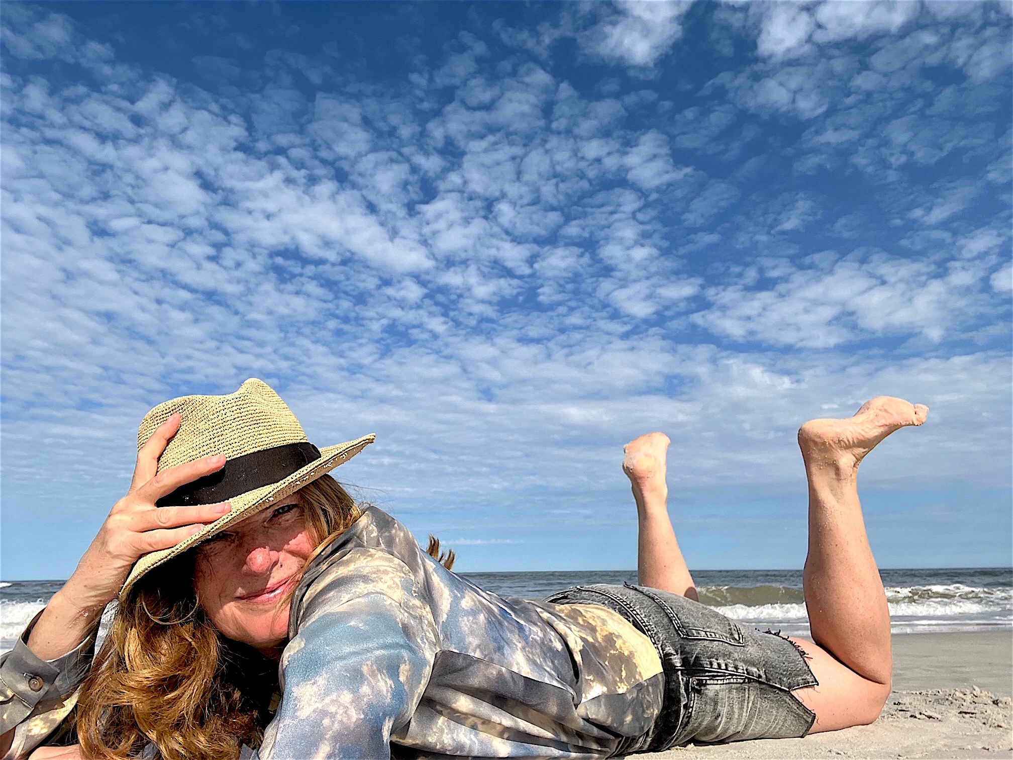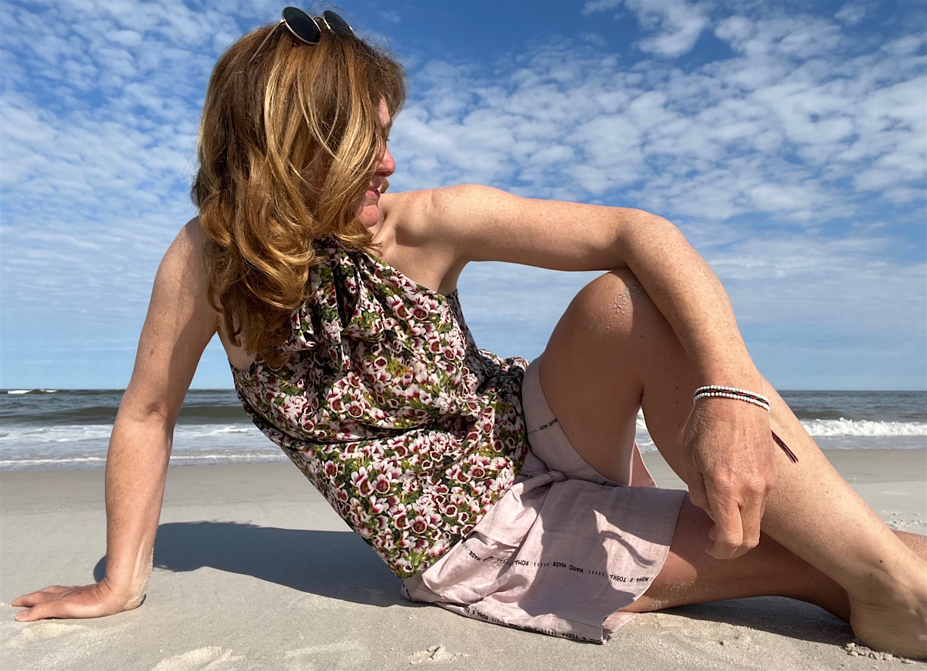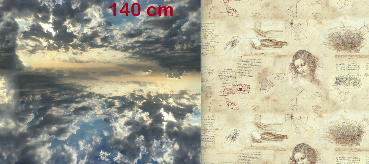 Als nächstes kam der “Himmel über Sylt” zusammen mit den Zeichnungen von Leonardo da Vinci. “Prima Idea” hatte ich die Kollektion genannt, ein Begriff aus der Renaissance, die erste Idee, die genauso wichtig ist, wie das spätere Werk. Vorlage wurde mein Foto von einem außergewöhnlichen Abend am Meer unterhalb der Sturmhaube. Ich habe diese Bluse und würde sie niemals hergeben. Die auf dem Foto kann Eure werden.
