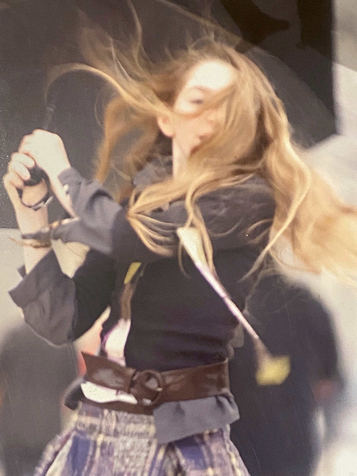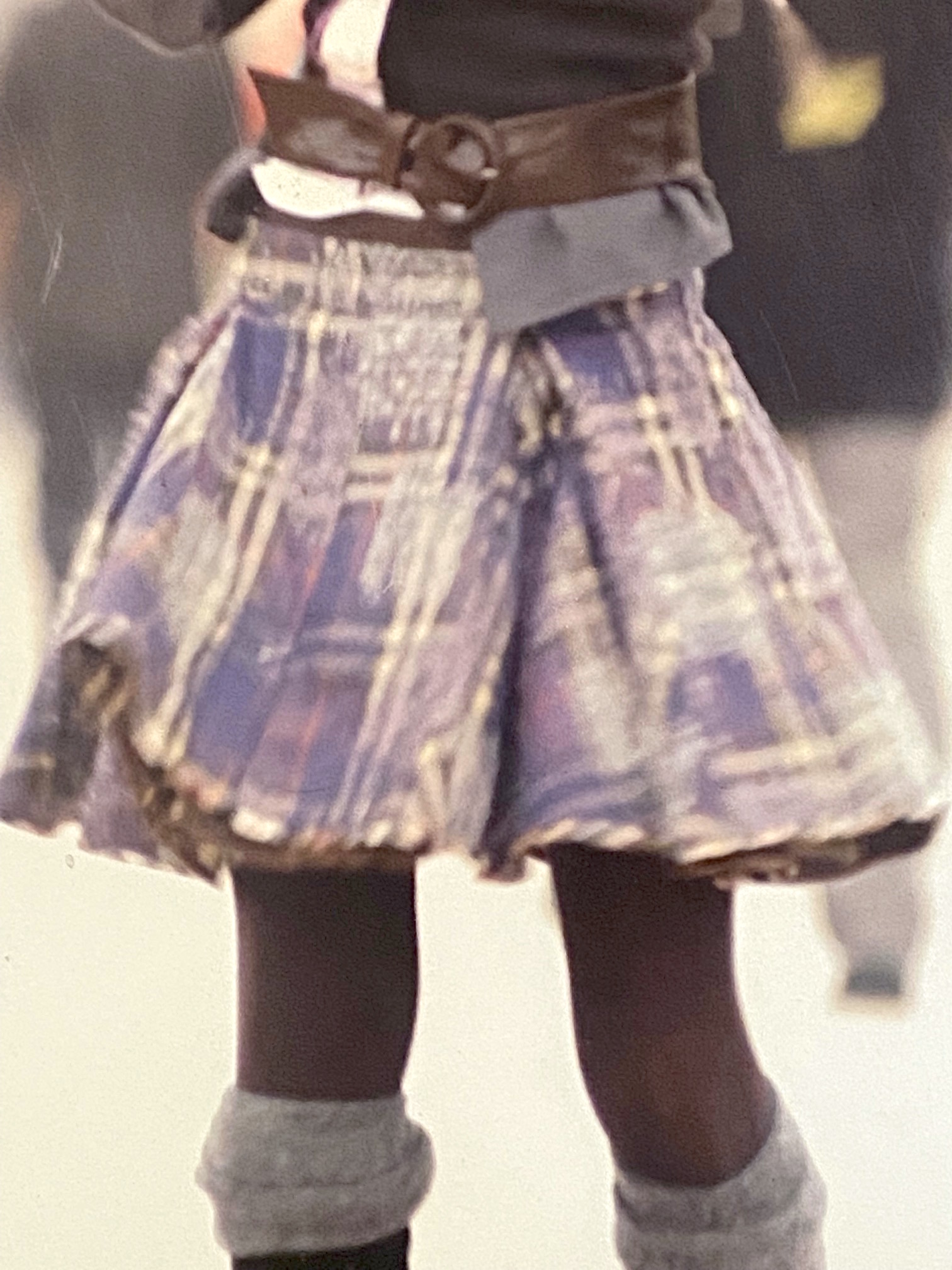 Toska hält mit beiden Händen den Regenschirm, ihre langen Haare, keiner durfte auch nur einen Millimeter davon abschneiden, wehen im Wind und verdecken ein wenig das noch kindliche Gesicht. Sie trägt die Bluse aus dunkelkariertem Wollstoff, einen der ersten Stretch Blazer, den es heute noch gibt, und dazu den raffinierten Woll-Tartan-Rock aus irre viel Stoff und komplizierten Faltungen.