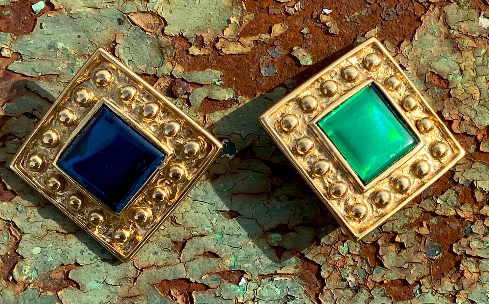 Abb: Yves Saint Laurent Vintage Ohrclips, grün-türkis, 3,0 x 3,5 cm (€ 450)