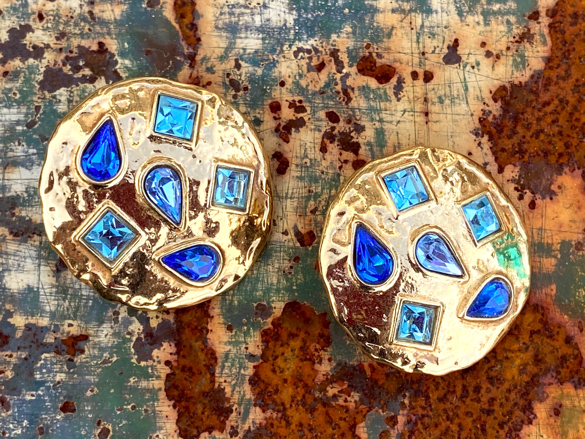 Abb: Yves Saint Laurent Vintage Ohrclips, türkis-blau, ø 3,2 cm (€ 700)