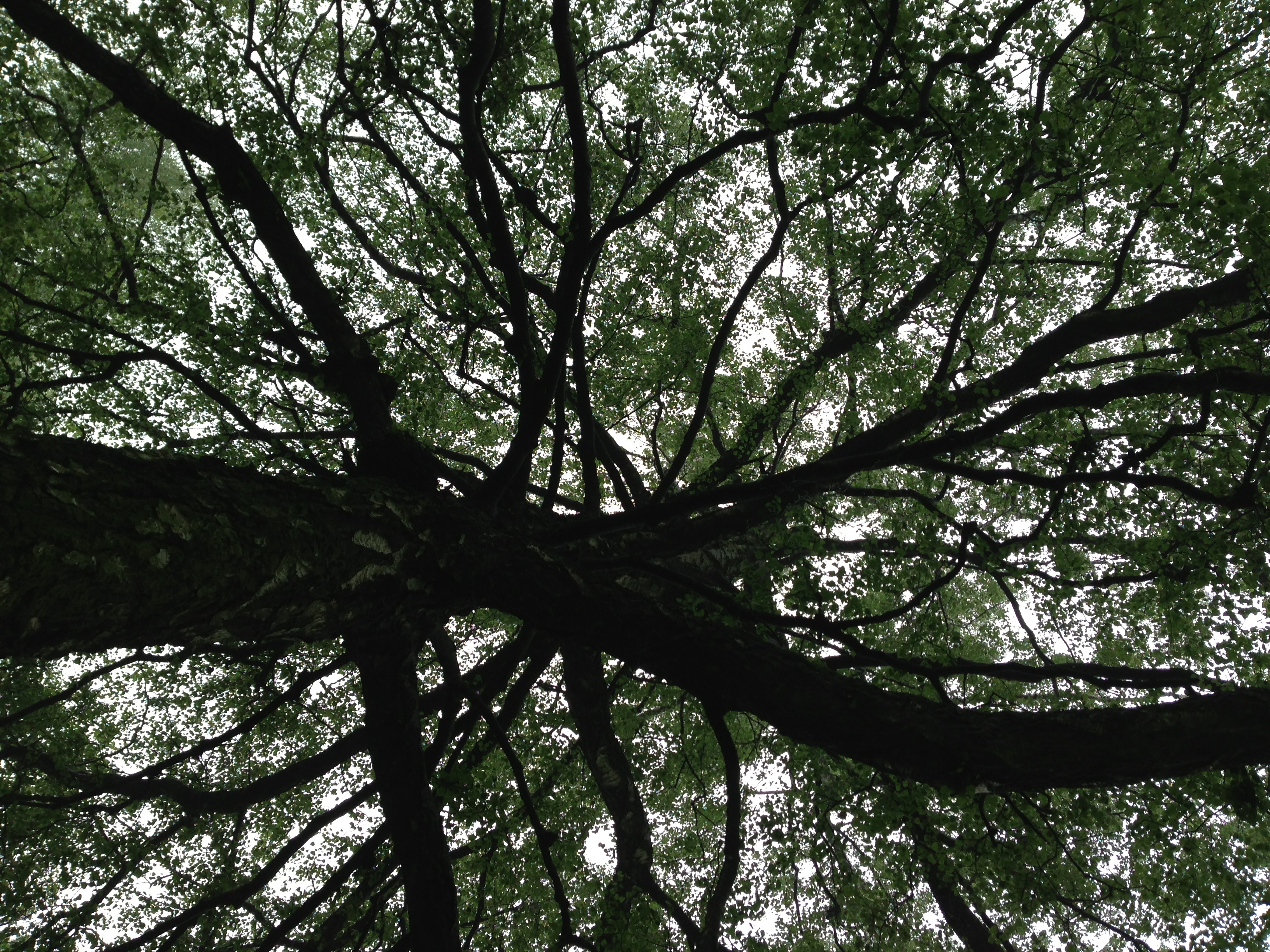 Warum liebe ich kleine Vichy-Muster? Wieso musste es der Turnbeutel sein, in dem die Mäntel aus einer der früheren Kollektionen verkauft wurden? Der Blick in die Bäume von unten auf dem Rücken im Gras liegend ist immer mit meiner Kindheit verbunden (wäre fast das Hauptmotiv von “Into the Woods” geworden).