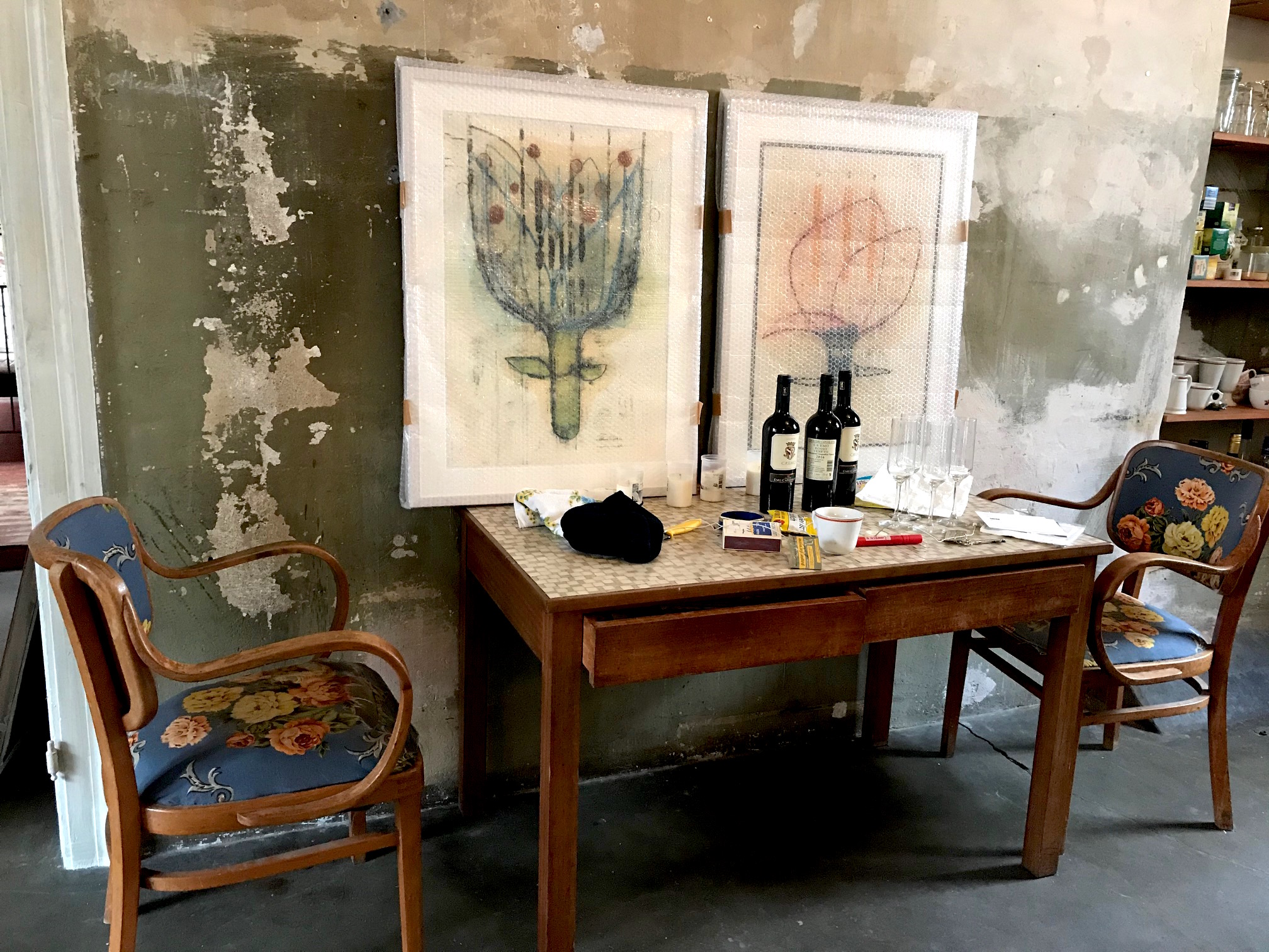 Den Auftakt macht Luca Lanzi aus Bologna, Italien, mit seinen Mix-Media Zeichnen, Malereien und Skulpturen. Dazu kommen von meiner Seite die Medusen und Einzeller von Ernst Haeckel. Beiden ist etwas Archaisches, Spielerisches gemeinsam, aber ich will nicht vorgreifen, am Sonntag wird installiert und eingerichtet. Auch Magpie Art Collective mit den Chandeliers und Möbeln aus Südafrika sind wieder dabei. Babette, wie schön!