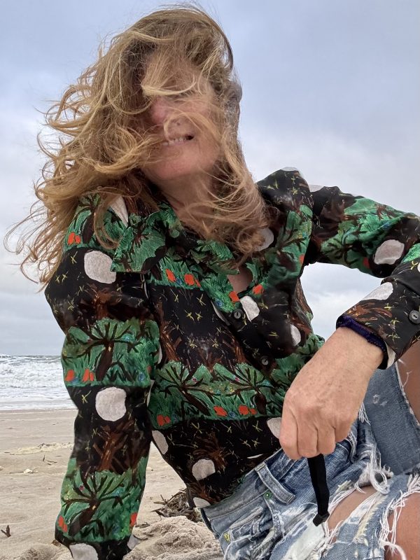 Die Knoten-Bluse ist ein Modell, das in verschiedenen Saisonen auftauchte und auf einen Entwurf von YSL aus den 1970er Jahren zurückgeht. In Falten gelegter Kragen mit kleinem Bindeband. Horngeknöpfe mit einem geschliffenen Kreis, der wie eine Mondsichel ausschaut. Die Bluse ist die perfekte Begleiterin durch den Tag und auf Reisen, wiegt keine 100g. Das Motiv gehört in die “Childhood” Kollektion und basiert auf einem Wachsmalbild eines neunjährigen Jungen, gedruckt auf Crêpe de Chine Seide in Oberitalien.