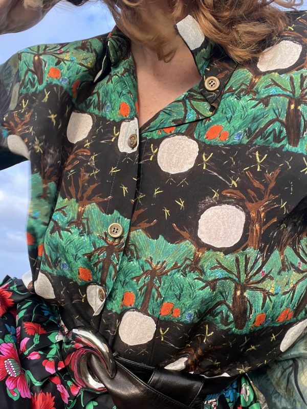 Diese Basic Bluse ist ein Modell, das sich über viele Saisonen zu einem Must-Have entwickelt hat. Kleiner Kragen, überschnittene Schulter und (anders als in der Abbildung) eine verdeckte Knopfleiste. Sie wird lässig oversized getragen und wiegt weniger als 100g. Eine perfekte Begleiterin durch den Tag und auf Reisen. Das neue Motiv gehört in die “Childhood” Kollektion und basiert auf einem Kinderbild. Verändert und bearbeitet, gedruckt in Oberitalien. Diese Bluse gehört zum letzten Kapitel der Childhood Kollektion.