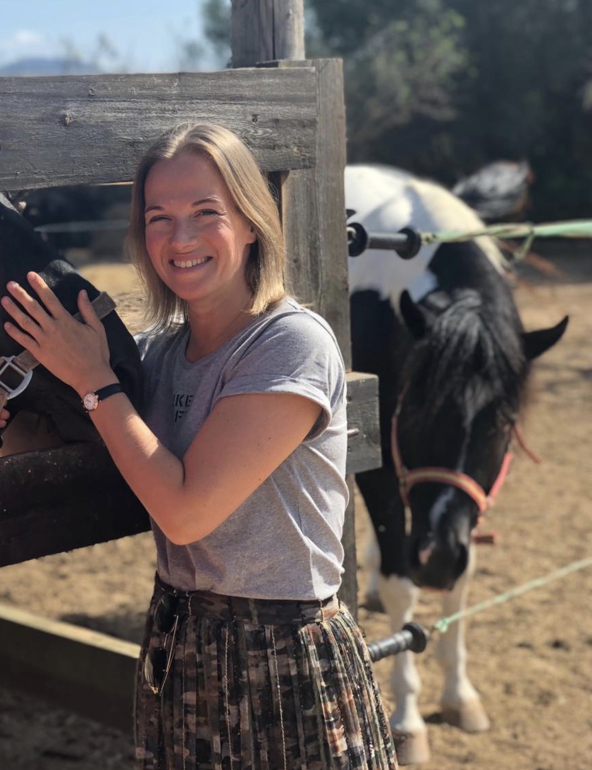 Und dann erhielt ich noch das Foto aus Mallorca, wohin die treue Roma e Toska Freundin gerade mit ihrem Mann und den vier Kindern gezogen ist. Regelmäßig erreichen mich Bilder in verschiedensten Outfits und sie beweisen auf schönste Weise, wie selbstverständlich die Tütüs getragen werden können. Hier das Camouflage Modell mit Slogan Shirt.