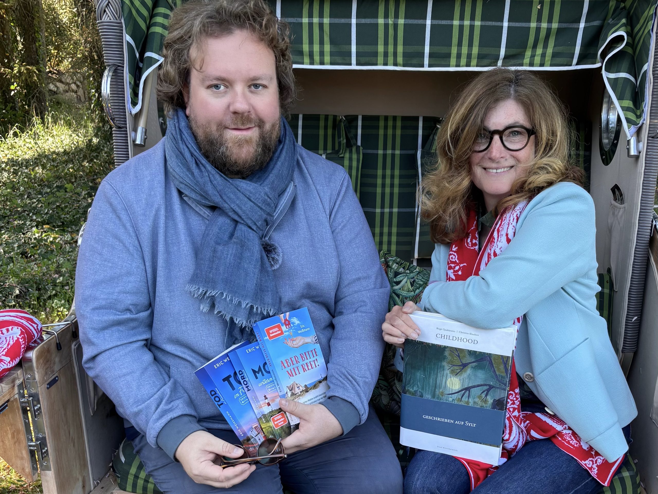 Partnervermittlerin Gabriele Pochhammer kam mit ihren Büchern vorbei. Und Eric Weißmann, Bestseller Schreiberling und Makler, wurde gefragt, was uns beide verbindet. “Der gleiche Spirit”, Sylt ein wenig anders betrachten. Wir beide grinsen uns an, es bringt Spaß, als Duo fröhlich gegen den Mainstream zu schwimmen.