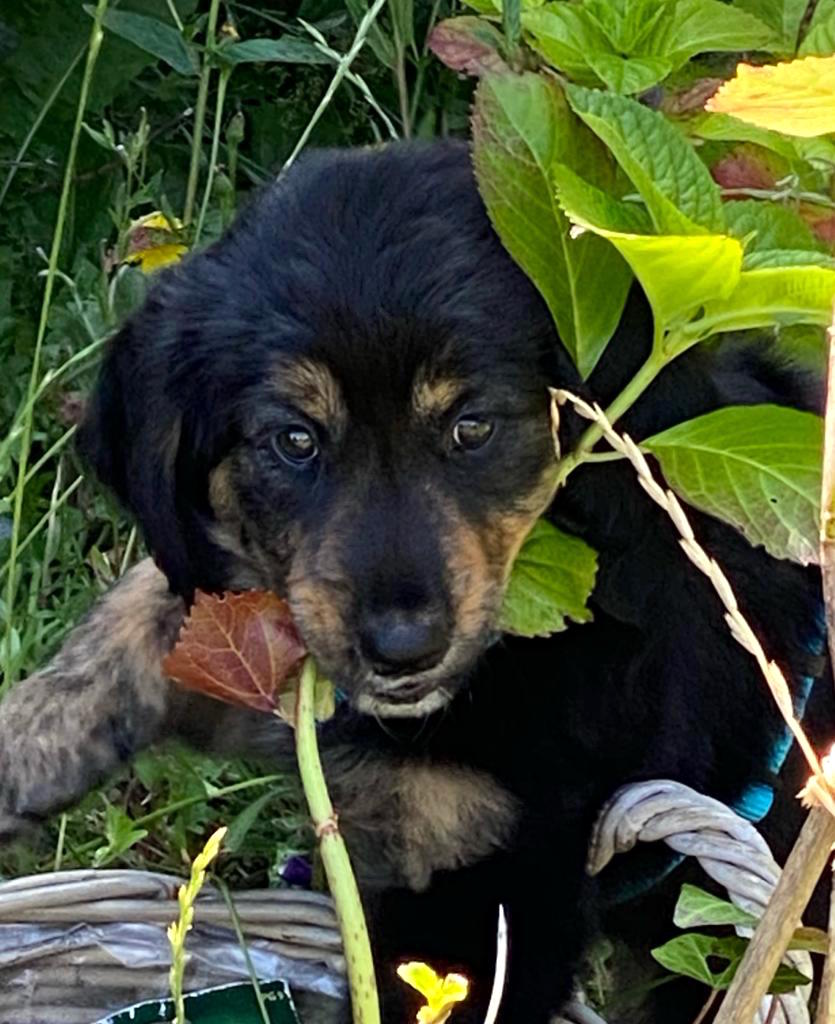 Samy, unser Neufundländer-Labrador-Retriever-Bordercollie-Mix, brauchte eine Gefährtin und so fanden wir Lady Bonnie Bo. Die Mutter, eine elegante Flatcoated-Dame, der Vater, ein stolzer Retriever. Seit gestern ist sie bei uns, die Kleine mit ihren neun Wochen alt, und verständlicher Weise gab es bei all der Aufregung und Begeisterung keinen Blogbeitrag.