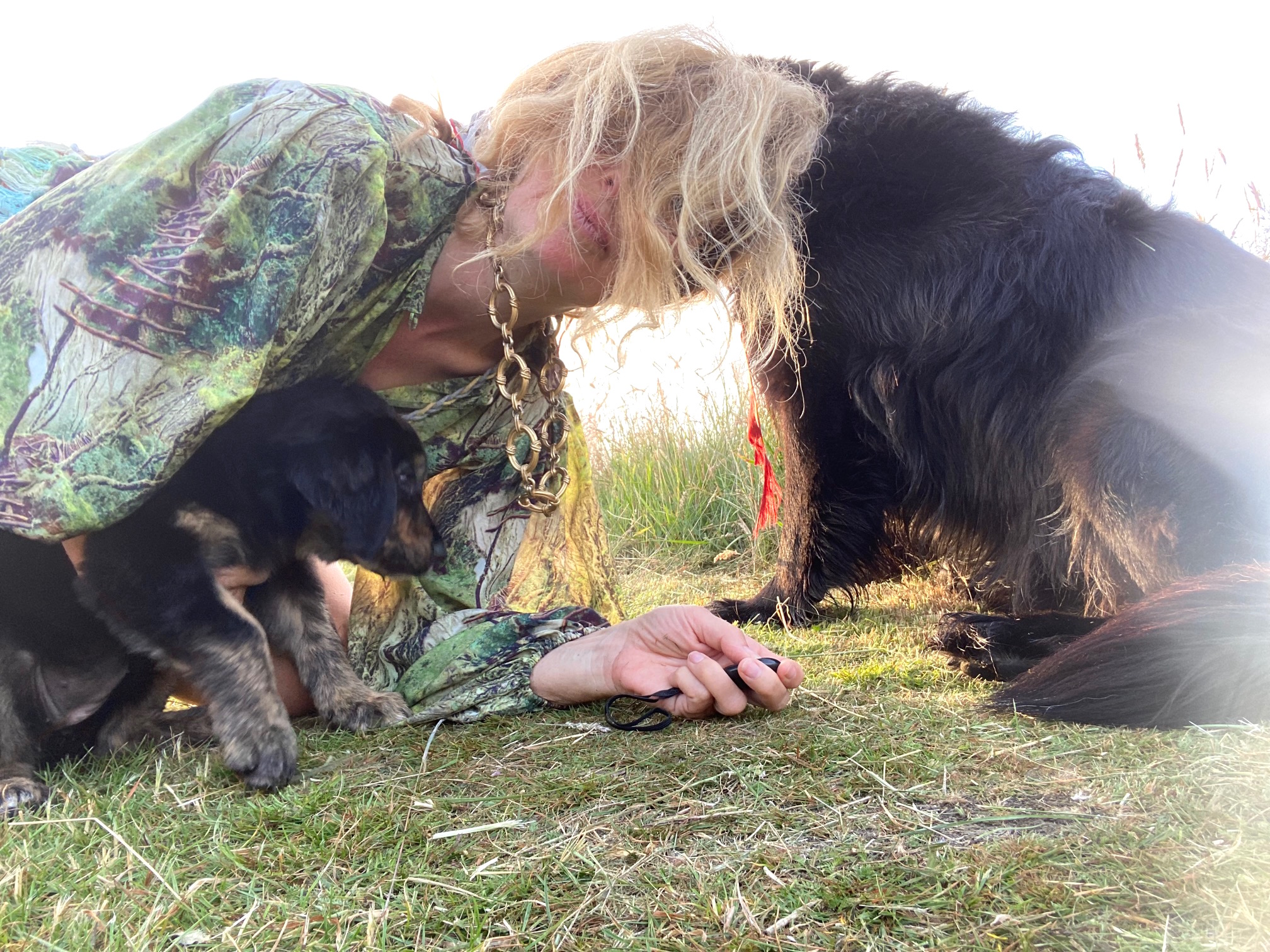 Natürlich bin ich ausgestattet, den Moment à trois einzufangen mit Mini-Stativ und Selbstauslöser. Samy ist routiniert, was das Fotografieren anbelangt, stand er doch schon als Baby vor der Kamera, die Kumpanin muss noch lernen. Wir üben.