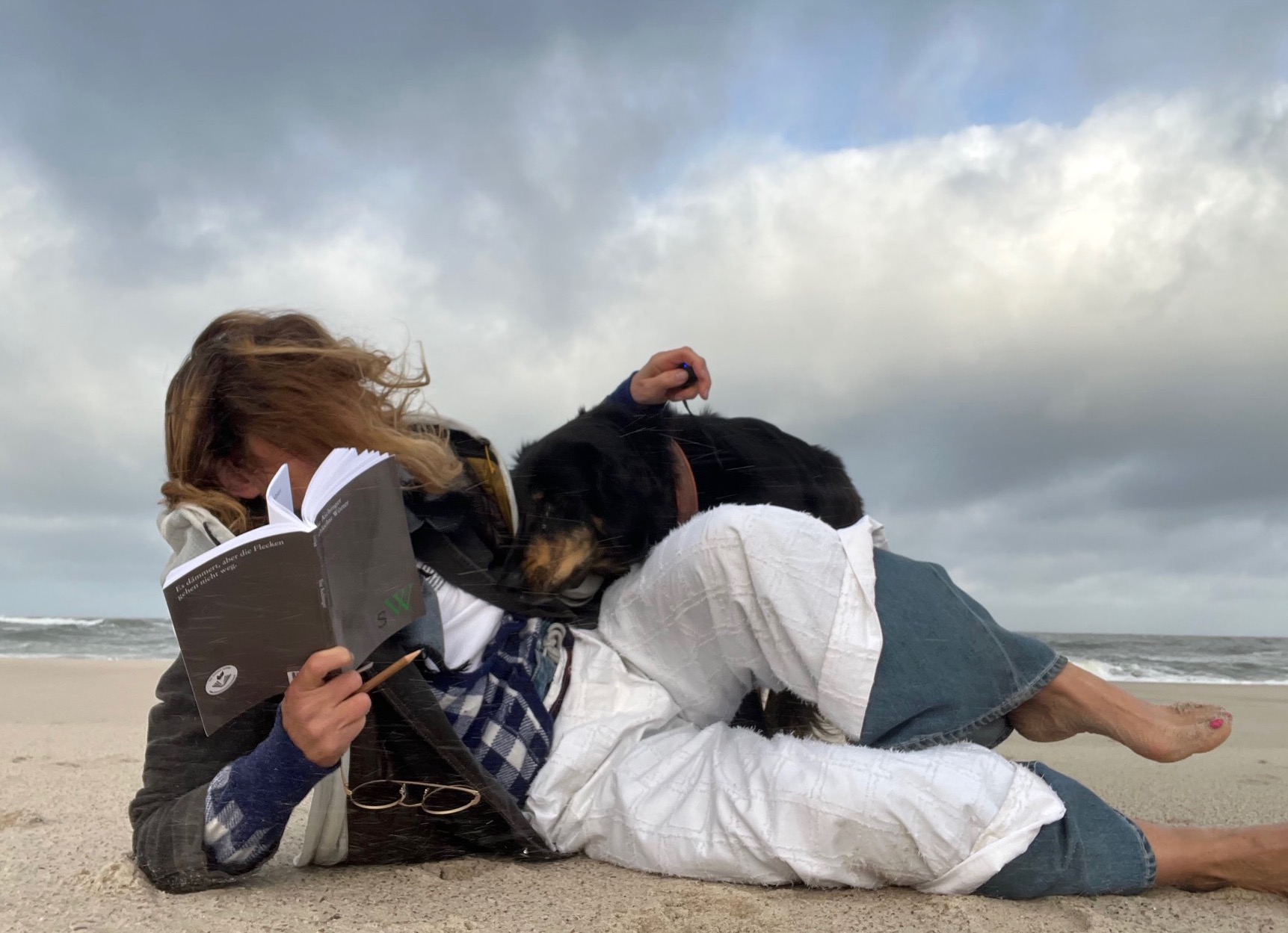 Was auch immer mich zu dem Kauf dieser anspruchsvollen kleinen Lektüre annimierte, ich erinnere mich nicht mehr. Ich blättere, ich lese gegen den Wind, ich lese den Hunden vor. Mich interessiert das Absurde, die “Zertrümmerung von Sinnsystemen”, wie es heißt.