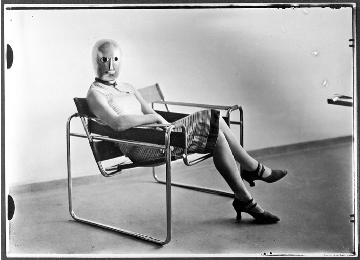 Abb: Maske von Oskar Schlemmer, Sessel Marcel Breuer, Foto Erich Consemüller 1926, Bauhaus-Archiv Berlin
