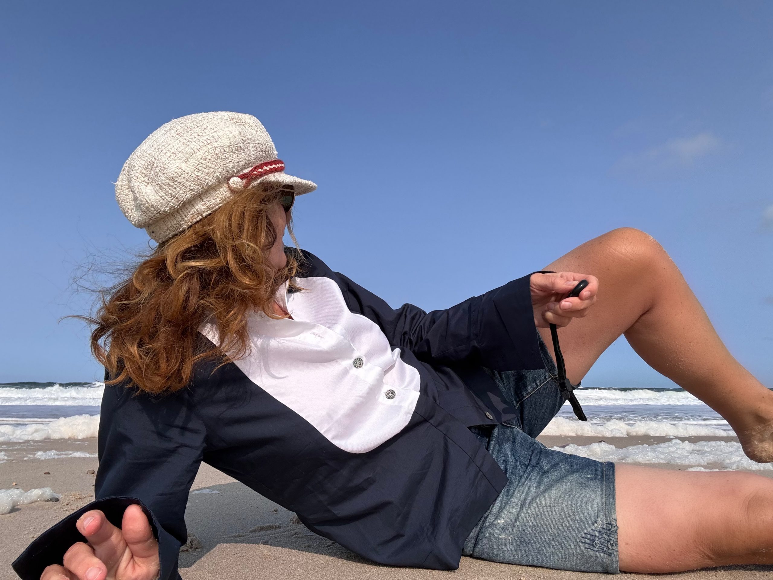 Manchmal braucht man eine Insel mit Menschen um einen herum, die den kritischen Austausch schätzen, die in der Ferne unterwegs sind oder in ihren vier Wänden die Welt zerlegen, um sie wieder neu zusammenzusetzen. Als ich vor ein paar Tagen ein wenig im Werk von Marcel Proust herumstöberte, fiel mit auch jener Satz in die Seele: “Die wirkliche Entdeckungsreise besteht nicht nur im Kennenlernen neuer Landschaften, sondern darin, etwas mit anderen Augen zu sehen.” Ich sehe blau und sehe weiß, und diesmal verknüpfen sie sich zu einer neuen Bluse mit Smoking Einsatz.