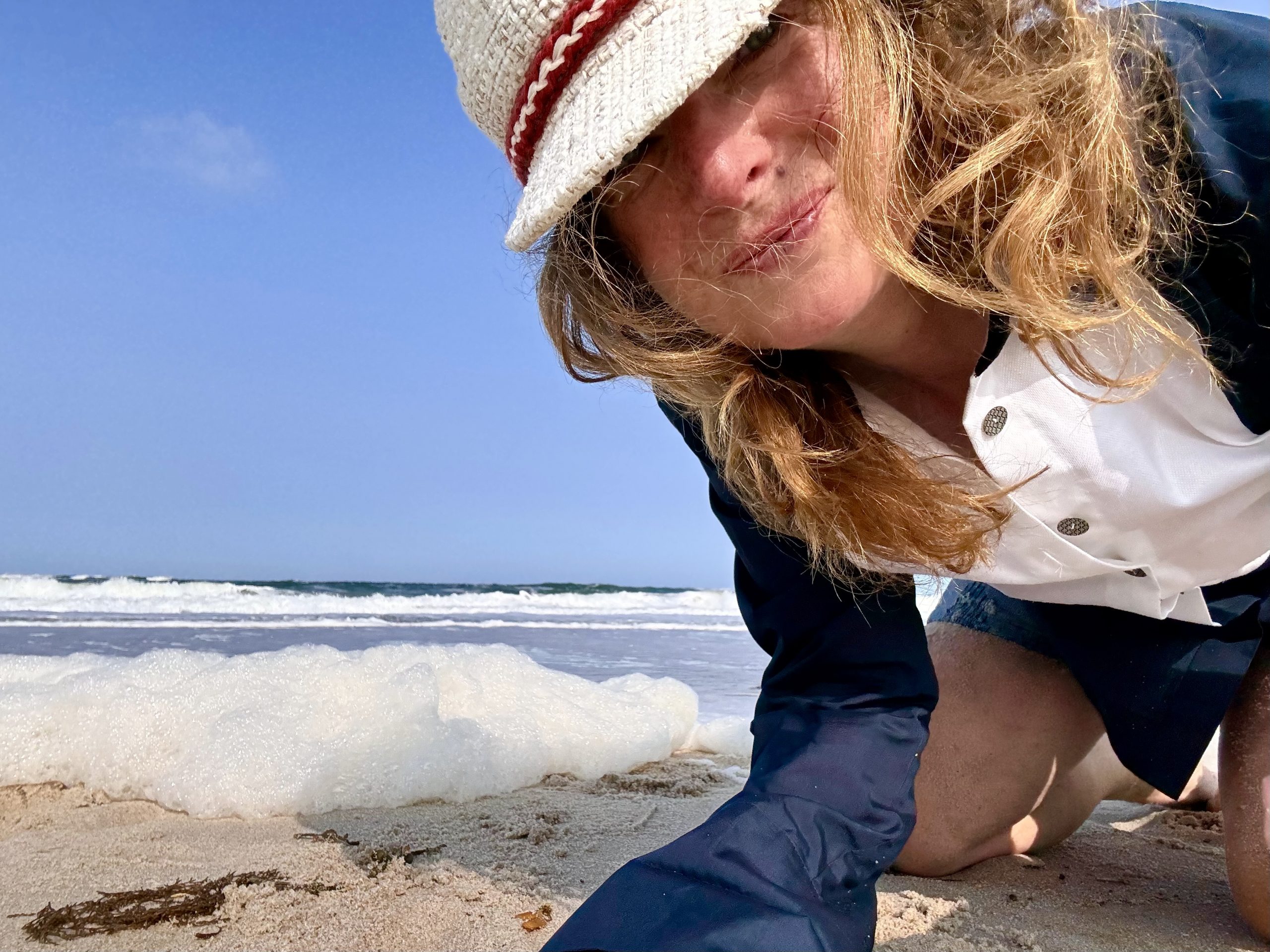 Dann ein aufgeregter Ruf: die Welle!! – Sie stoppt ein paar Zentimeter von mir entfernt mit weißem Schaum und über ihr das Himmelblau. Nur die Quallen, die gehören noch nicht hierhin. Sie sind viel zu früh in der Saison und kamen nicht mit dem Ost-, sondern mit dem Westwind. Es sollte uns zu denken geben.