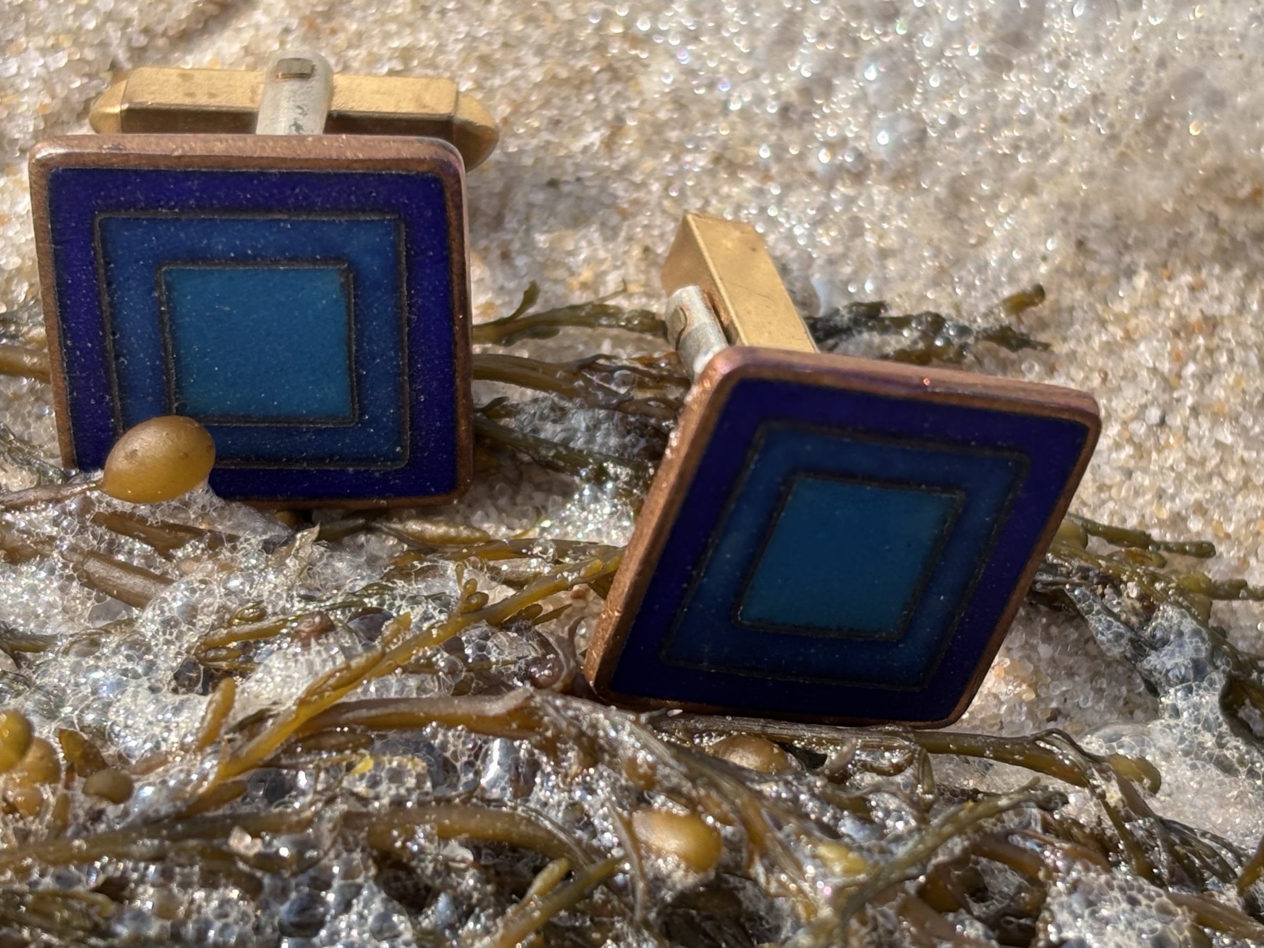 Manschettenknöpfe, Emaille blau, 1950er Jahre (€180)