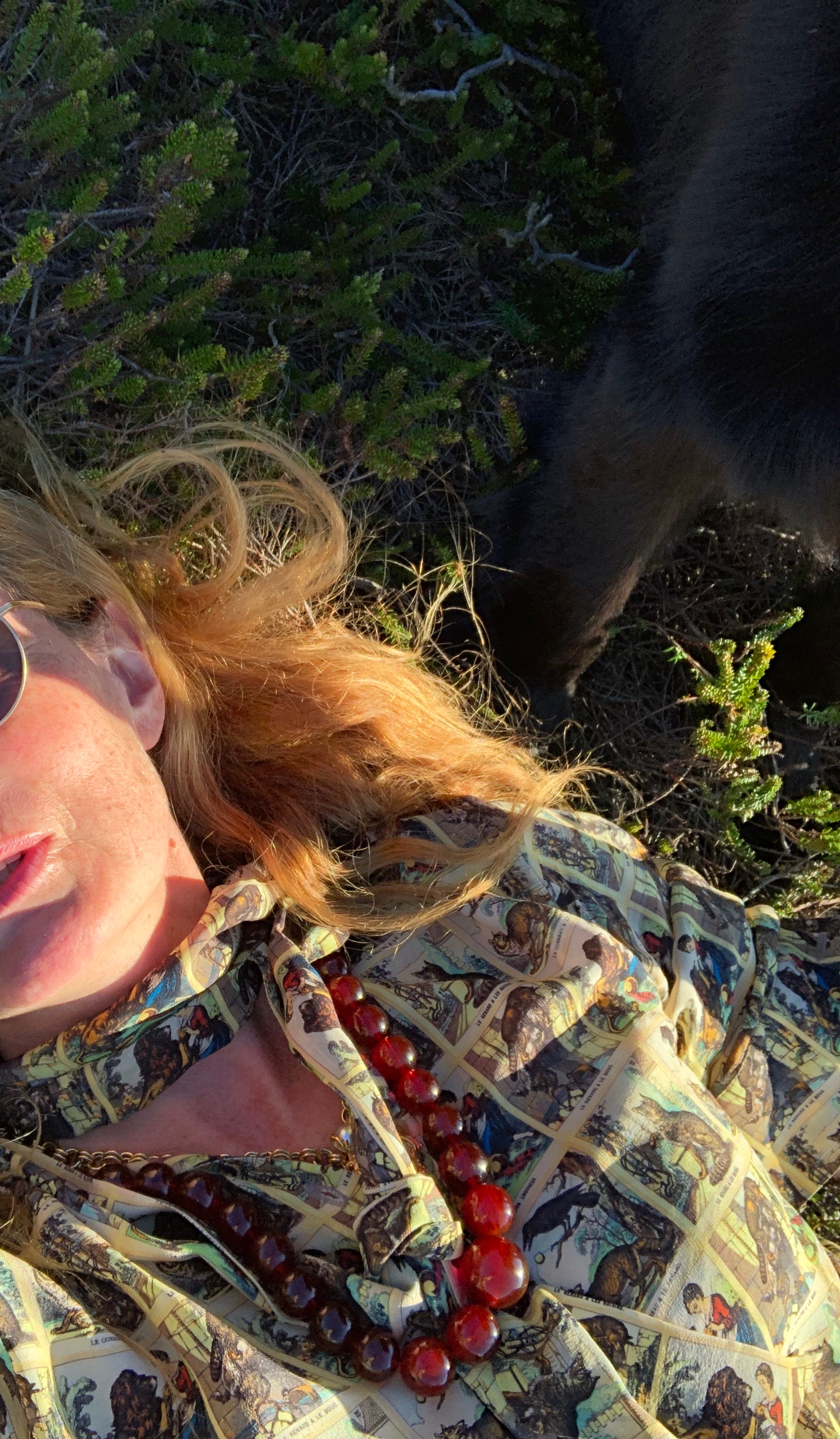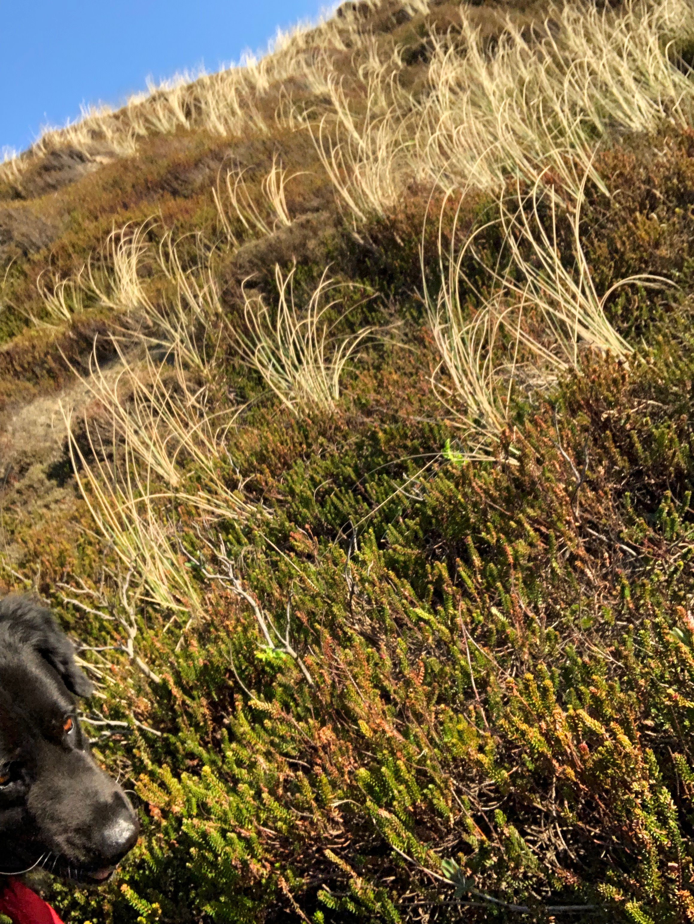Schon ein wenig komisch, wenn man da zwischen den Gräsern hockt oder liegt und versucht, das Outfit, den Hund, die Szenerie und das Meer einzufangen ohne dabei zerfurcht-besorgt, gequält und prüfend dreinzuschauen. Ich bewundere alle U-30, die so lässig mit diesem Medium umgehen und die Ausschnitte so souverän einfangen. Meine Fotostory könnte eher lauten: Bridget und der Wolf.