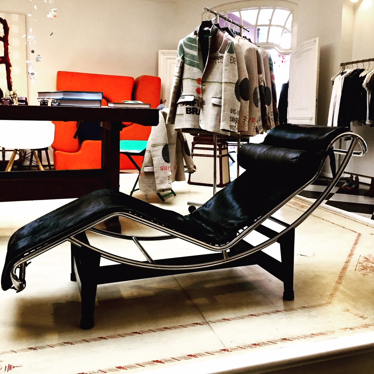 Diesmal gibt es etwas zum Lachen, denn gestern nach gefühlten zwei Stunden Nachtschlaf, nach einer ereignisreichen Woche mit Daueraktion, saß ich vor dem Roma e Toska Flagship Store in Kampen und bin wohl – weiß man’s – in einen sanften Tiefschlaf gefallen. Jedenfalls traf ich abends am Strand eine gute Kundin, die mir freudestrahlend erzählte, dass sie mich so gesehen hat, mich nicht wecken wollte … Wieviele es wohl ähnlich gemacht haben, sich gar selbst bedienten? – Der Umsatz war jedenfalls nicht schlecht. Hoffentlich sah ich nicht ganz entrückt aus, mit offenem Mund, – man kennt es ja von Flug-und-Bahnreisenden. Habe ich eventuell gar geschnarcht? Oh, weh, allein der Gedanke dran treibt mir die Peinlichkeitsröte ins Gesicht. Aber wir haben eben eine etwas andere Boutique, da darf die Chefin auch mal vor sich hinschlummern – oder? Ist ja nicht das erste Mal, Ähnliches passierte mir in der ultrabequemen Le Corbusier Liege aus den 1960er Jahren, die dekorativ zum Verkauf in der MILCHSTRASSE 11 steht.