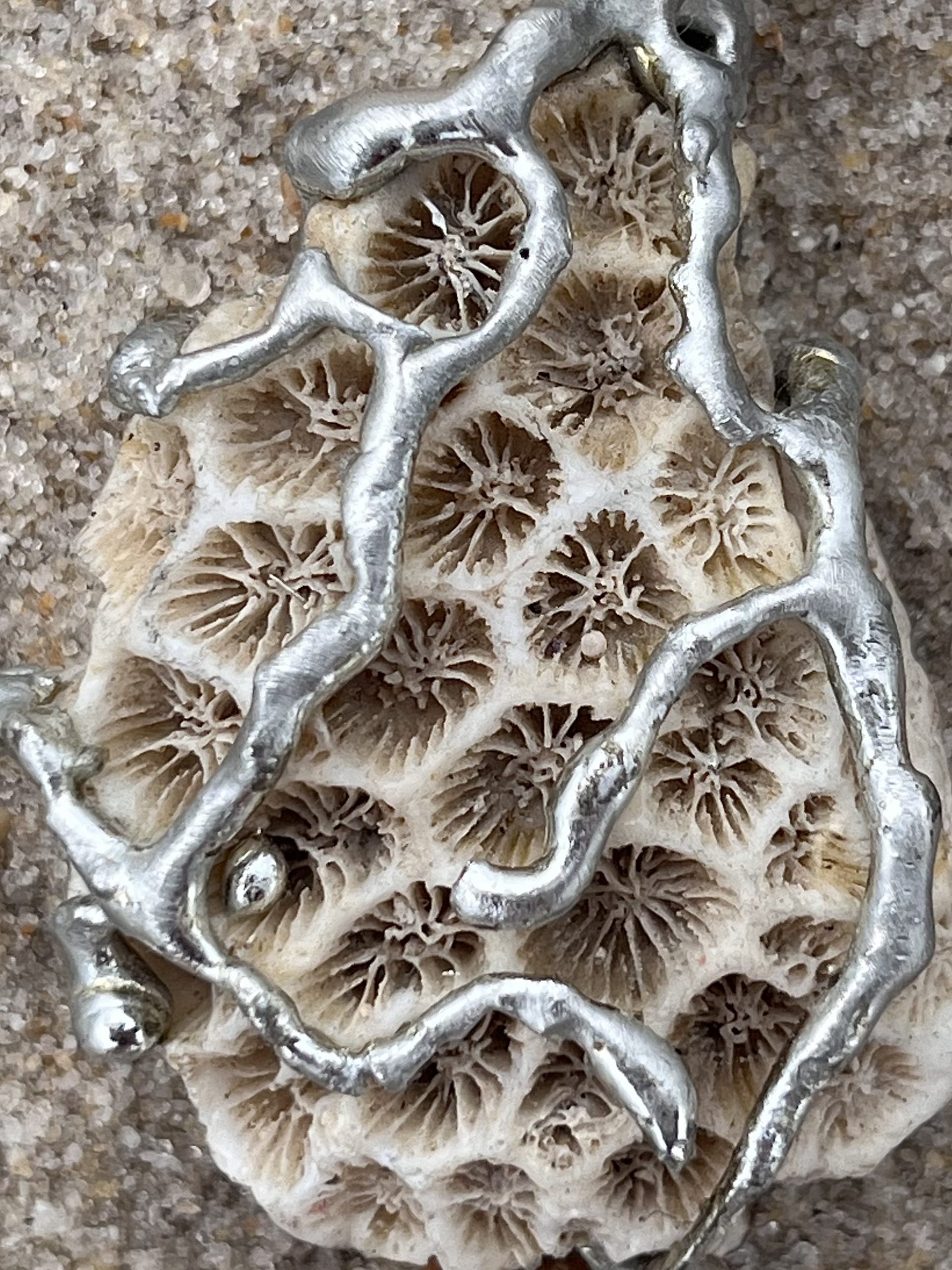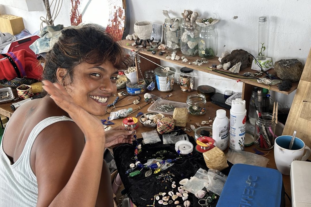 In ihrem Atelier, durch das der warme tropische Wind streicht, fügte sie die Elemente zu Colliers zusammen, gefasst und ergänzt mit einer Zinnlegierung. Jedes Stück ist ein Unikat und ein charmant erzählendes Pendant zum Sommerkleid, zur Seidenbluse oder einfach nur cool und lässig zum T-Shirt.