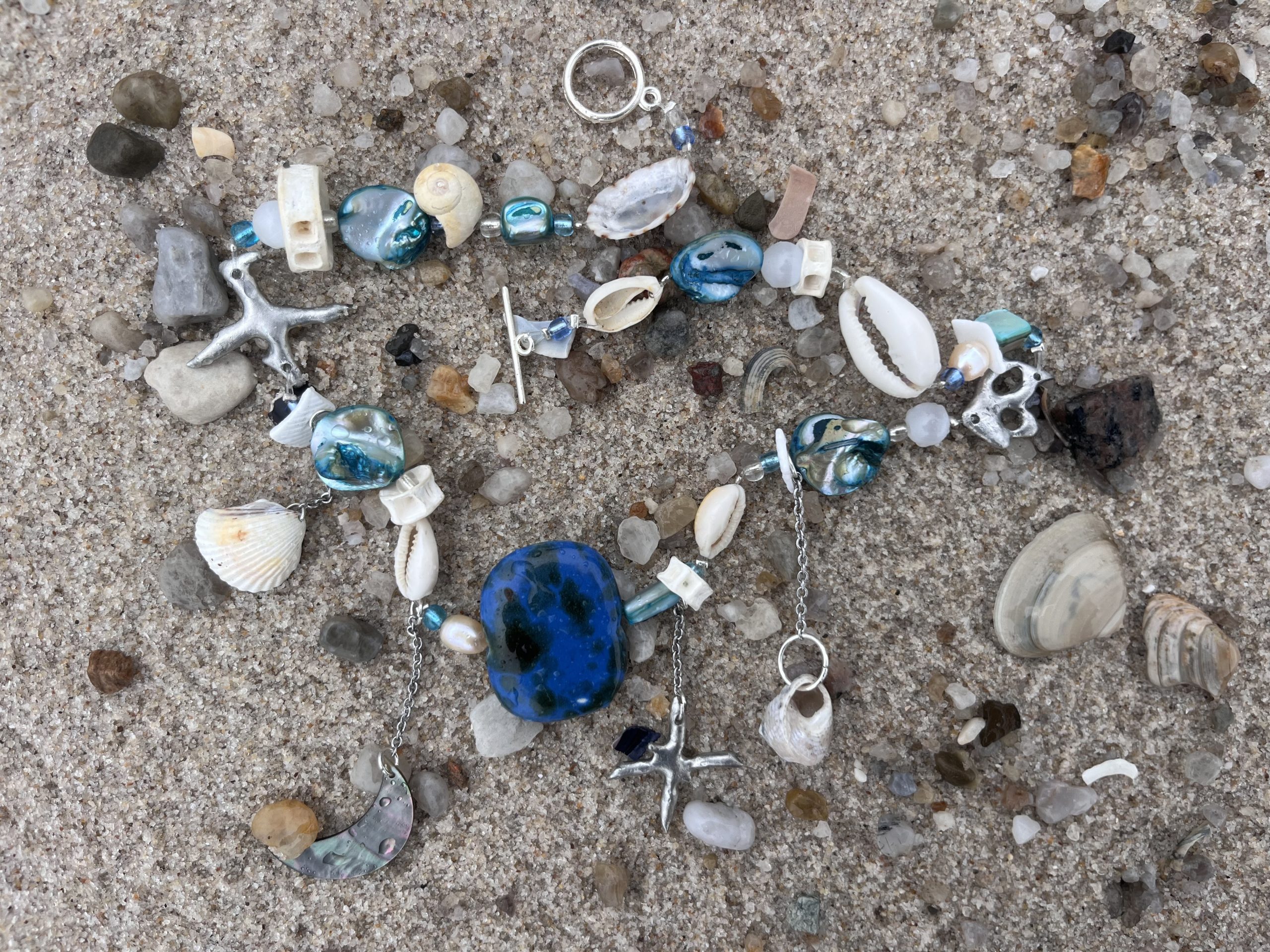 Gestern kam das Paket an mit den Sommerketten von Floryne, der talentierten Freundin von Roma, die die Strände der Vulkan-Insel abläuft, auf der Suche nach Muscheln, Korallen, Seeigel-Versteinerungen, Knochen vom Rochen sowie vom Meer abgeriebenem Glas.
