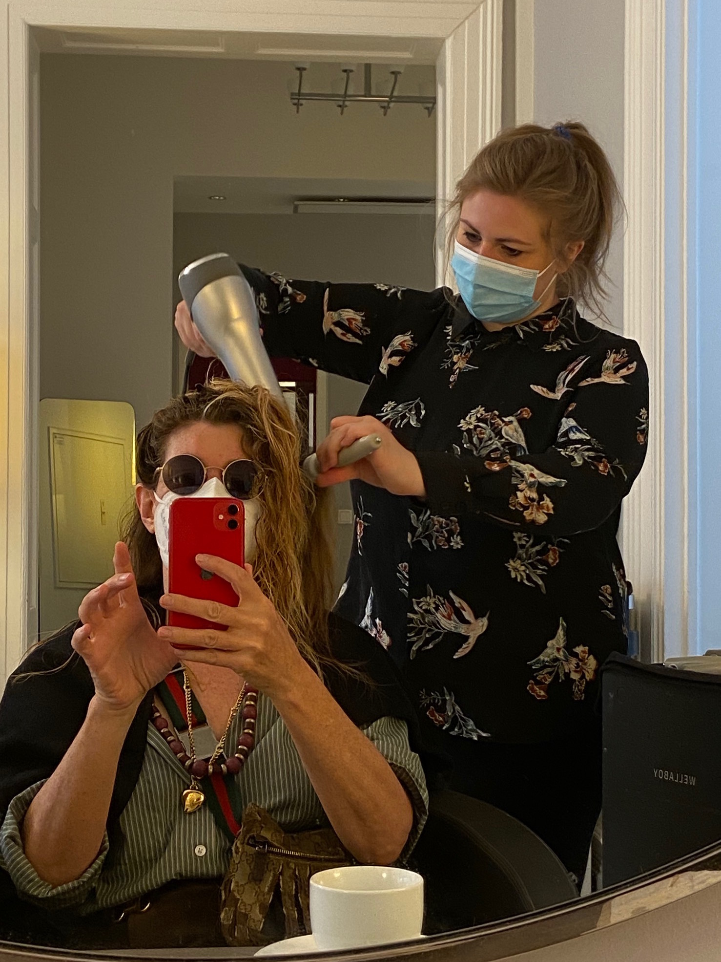 Warum nicht einfach zwischendurch zum Friseur. Stichwort: glamorous. Ich bekomme einen Termin, auf den man sonst zwei Wochen warten muss, der Tag ist gelaufen, Glückstag sozusagen. Rosanna und ich lachen, wofür der ganze Aufwand. Na klar, für uns selbst und für all die anderen um uns herum. Wer braucht nicht sein Publikum, um sich besonders zu finden, strahlend, sprudelnd, erfrischend, extravagant und … unbedingt: verführerisch?