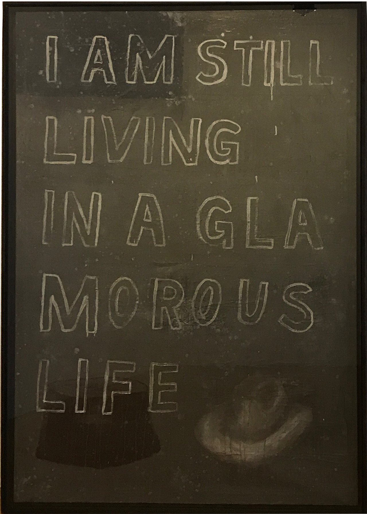 Abb.: Peter Büchler, I am still living in a glamorous life,1999, 184 x 135 cm, Mixmedia, Galerie Holthoff
