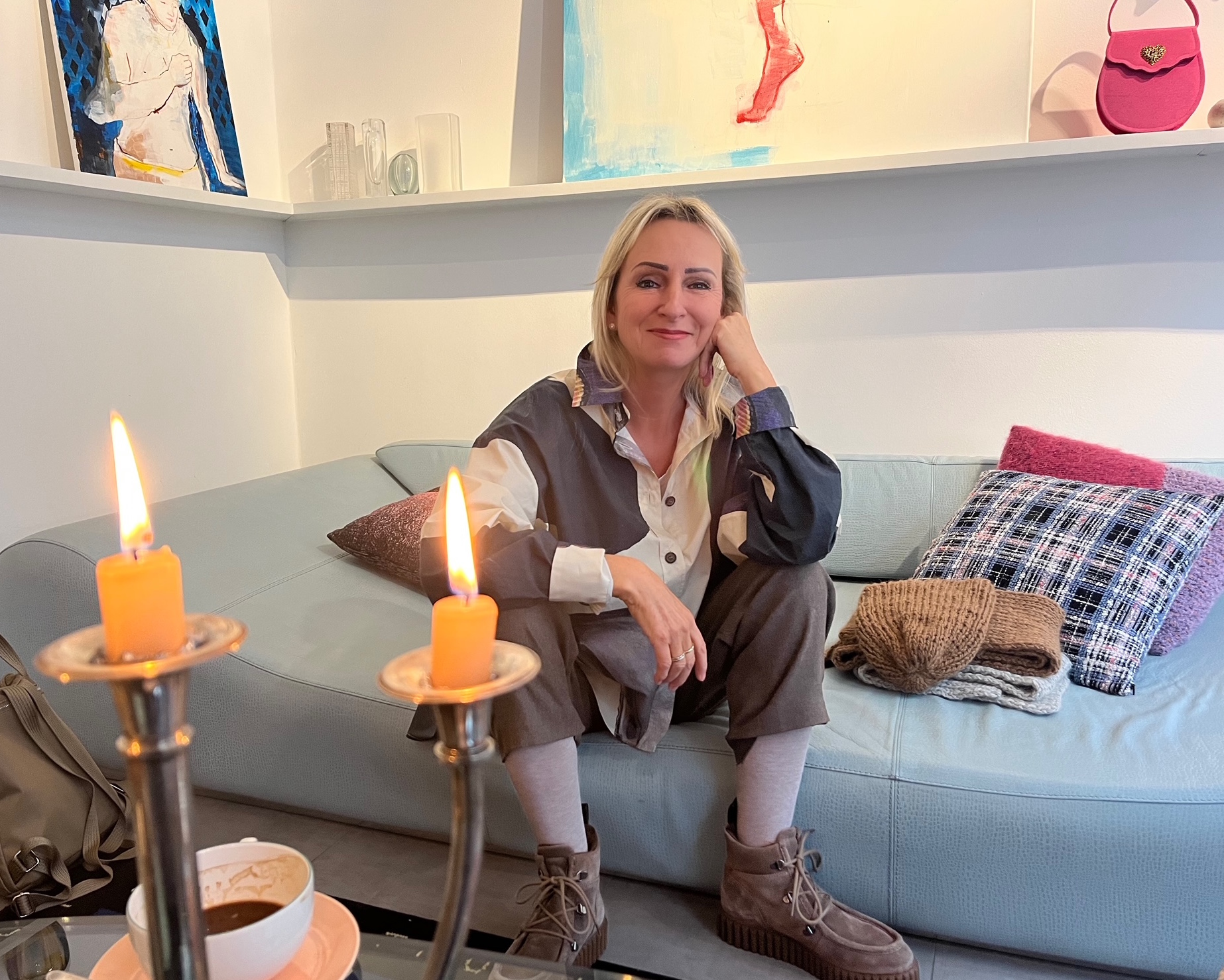 Auch ich erlaube mir langsam zu sein, habe meine eigenen Rituale: schaue ewig in das flackernde Licht der Kerzen, gehe endlos spazieren, lese und – ja warum nicht – beginne wieder zu stricken. Wartet es ab, als nächstes gibt es die 3,40m Schals von Countess Bridget. Dazu habe ich mir eine professionelle Verbündete geholt, Carmen Hemmer aus Lörrach, Cashmere-Expertin. Sie wird uns bald mit handgestrickten Unikat-Pullovern und Accessoires beliefern.