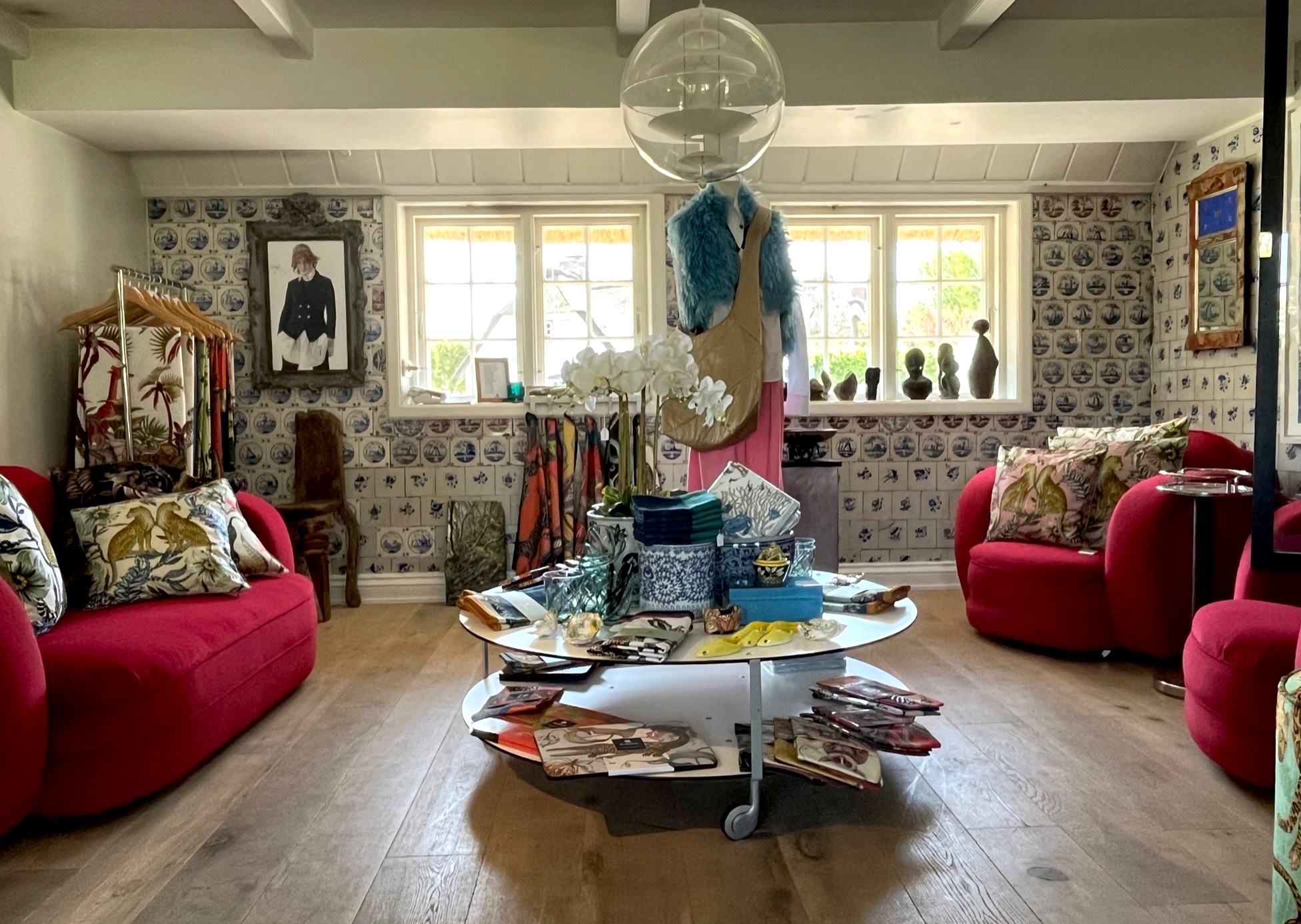 Zum Schluss verwandeln Ralf und Falk mit wenigen Handgriffen und einem präzisen Arrangement das Delfter Zimmer, das als Chambre d’Amis für Ardmore reserviert ist, in eine Wunderkammer. Voilà, es könnte trotzdem immer noch ein Zuhause sein oder ein Kaufmannsladen der exklusiven Wünsche.