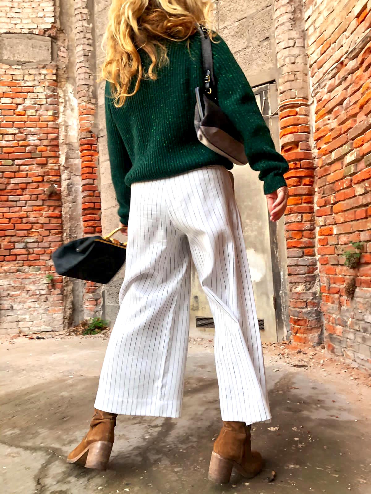 Abb: Marlene Hose, Cashmere Wolle Pullover, Stiefel Taglia Scarpe, Vintage Tasche Roberta di Camerino