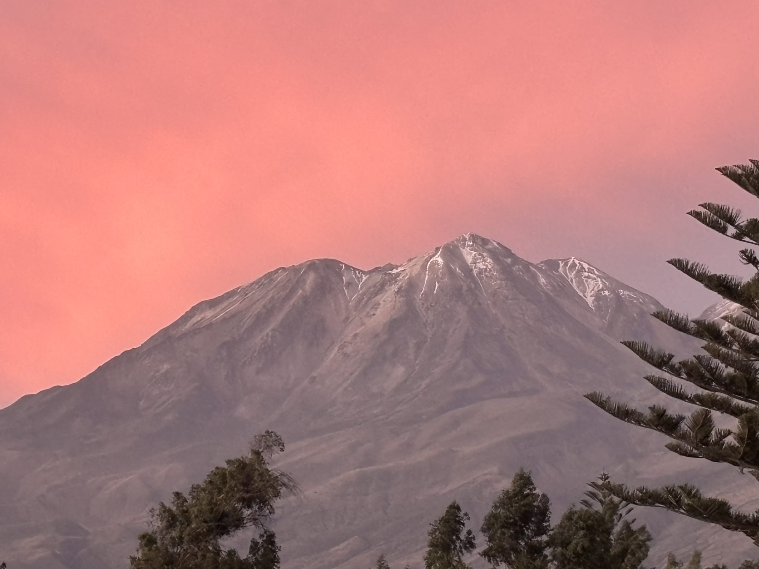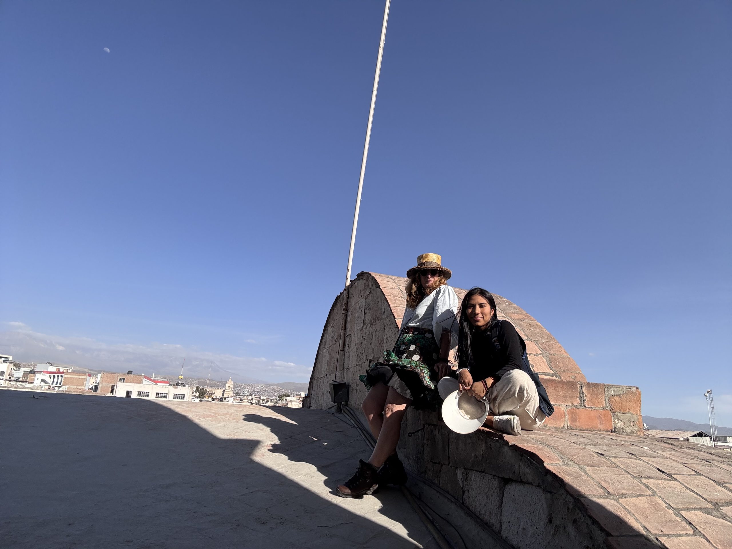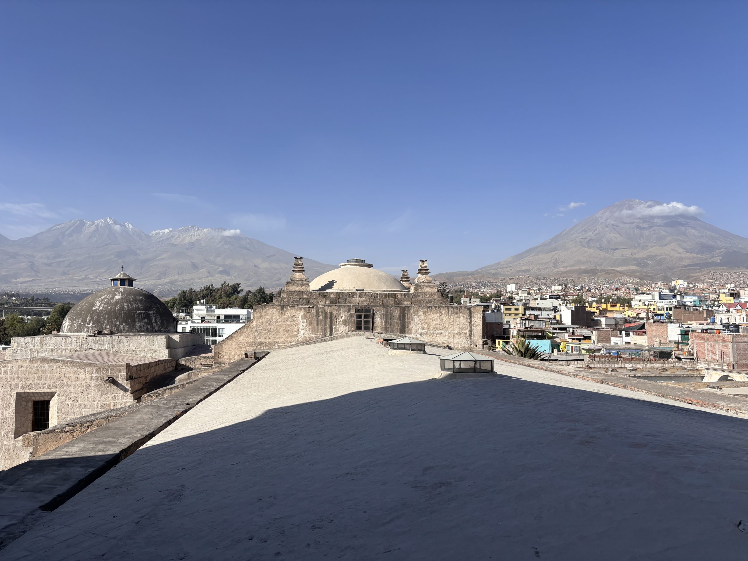 Sie erzählt von sich, fragt mich über Deutschland aus. Der Rest ist Schweigen über den Dächern von Arequipa mit Blick auf den Chachani Vulkan mit seiner Schneehaube (6.057m). Zu anderen Seite trohnt der Vulkan Misti (5.822m), der noch aktiv ist.