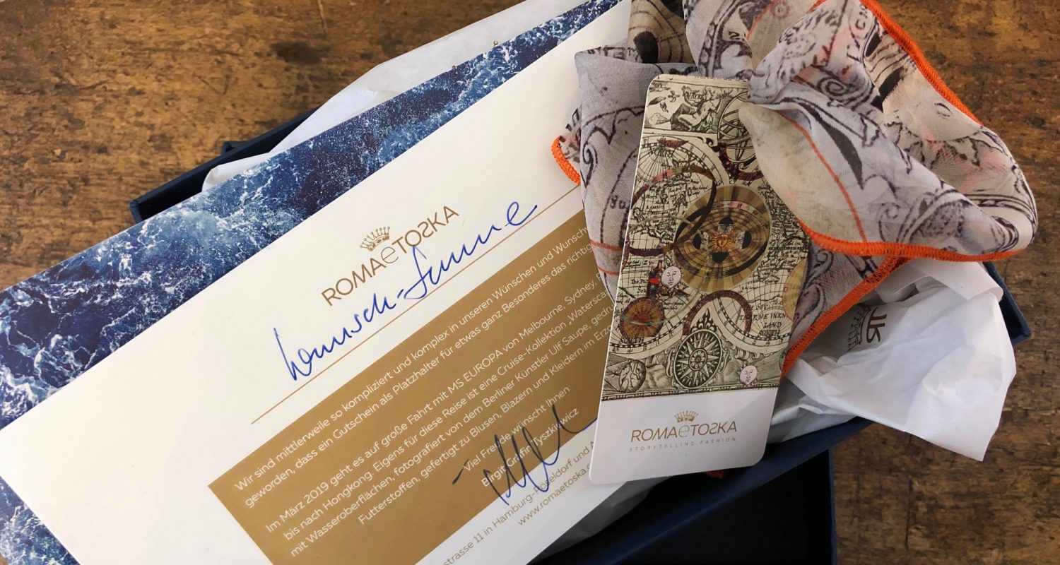 Gestern hatte mich eine kurze heftige Grippe aus der Bahn geschleudert. Kein Blogbeitrag! – Heute geht es schon viel besser und so kann ich über den Unique Seidenchiffon Schal berichten, von dem es, wie der Name “unique” schon sagt, nur ein Exemplar gibt passend zum 1. Advent. Die Geschichte von Roma e Toska begann mit …