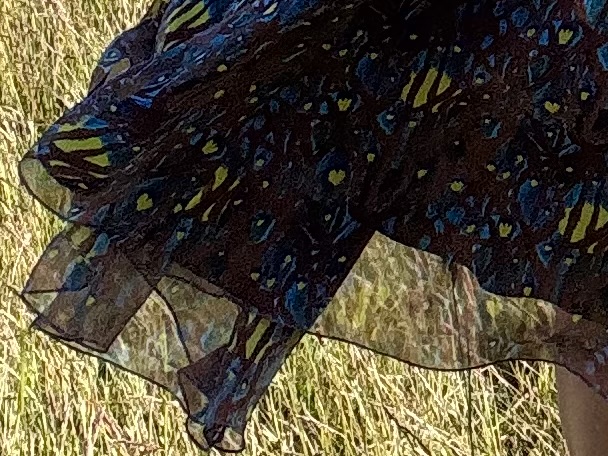 Ein Spaziergang im Frühling. Die Farben von meinem Rock konkurrieren mit dem frischen Grün. Am Horizont schimmert das Wasser auf dem Watt. Herrlich fühlt es sich, leicht und fröhlich. Ein Ehepaar mit Hunden kommt mir entgegen, lächelt, als wolle es sich ein wenig an meiner Buntheit sattsehen. Resolut raffe ich den Blumenorganza Stoff mit der …