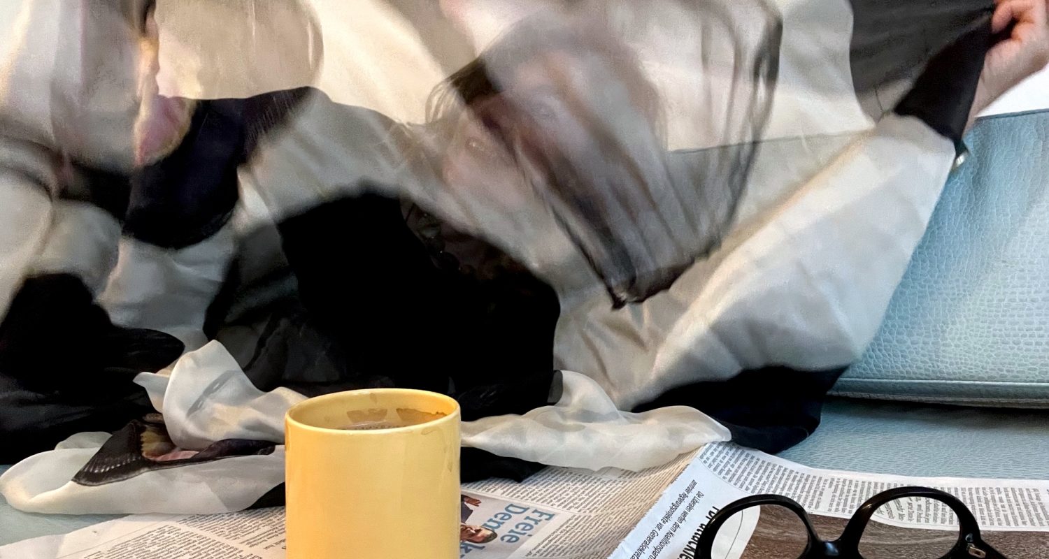 Heute erzähle ich die Geschichte des Chiffon Muschelschals mal ganz anders. Kein Wind flattert mir durch die Haare und zerrt an dem dünnen Seidentuch, kein Blick gleitet über das Meer, keine Möwen, die kreischend zwischen Himmel und Wellen gleiten. Stattdessen städtisches Feucht-Grau. Gegenüber hämmern die Handwerker an der Fassade, hinter die bald Freundin Livia mit …