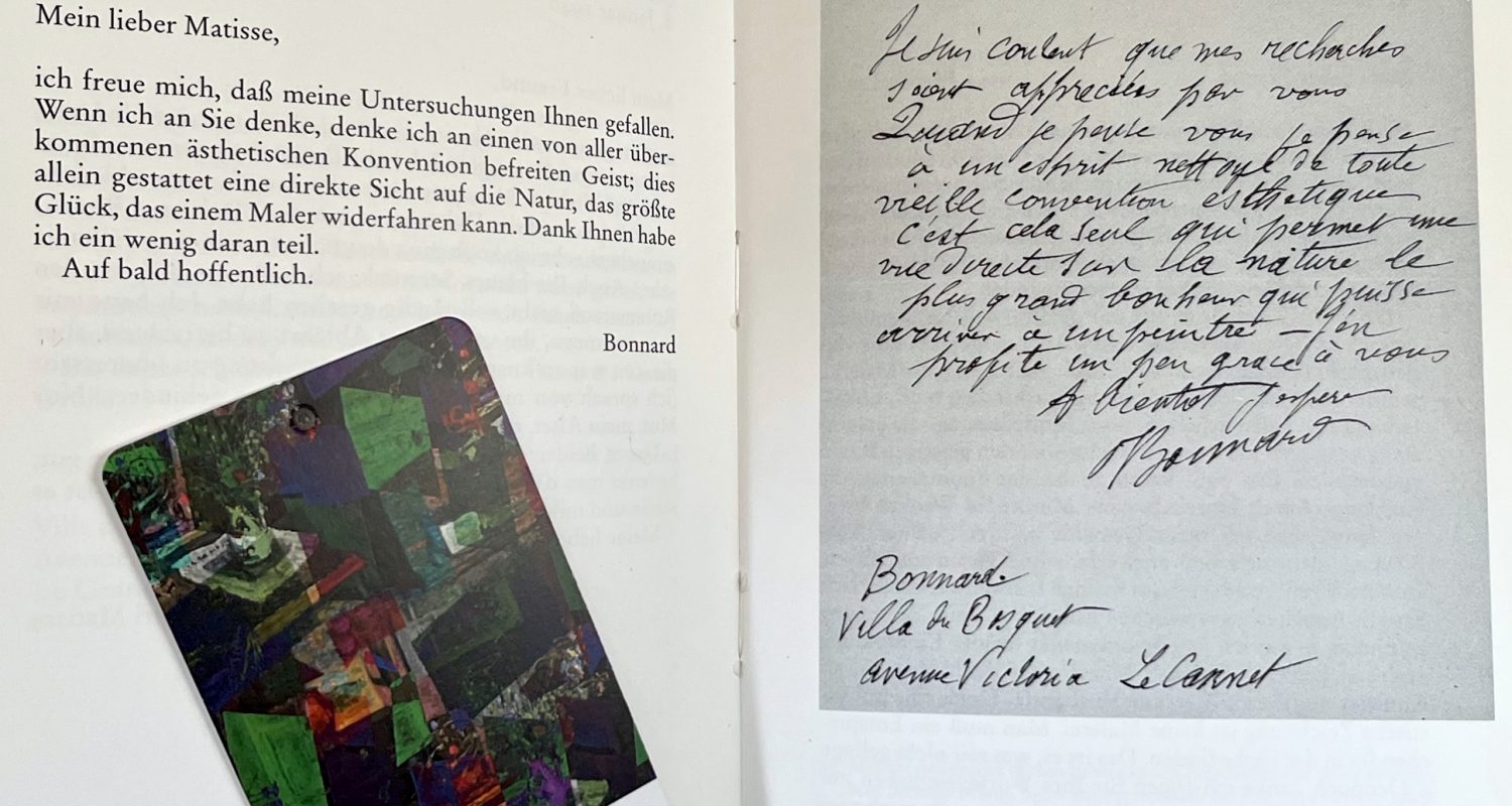Neben mir liegt der Briefwechsel zwischen Pierre Bonnard (1867 – 1946) und Henri Matisse (1869 – 1952), den die beiden großen Meister der Malerei zwischen 1926 und 1946 miteinander führten. In der Einleitung ist von einer “anrührende Prosaik des Einfältigen” die Rede. Da wird schriftlich überlegt, ob man ein Taxi nehmen sollte oder nicht, es …