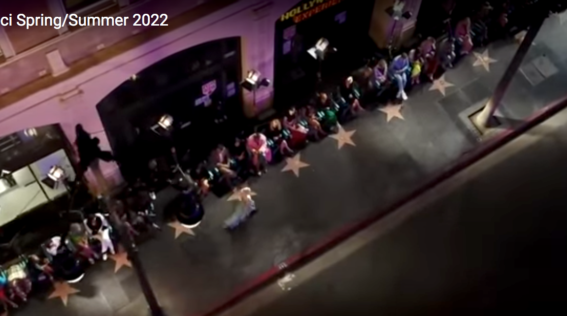 Wenn die Straße zur Hauptdarstellerin wird!, so geschehen in der Gucci Spring-Summer 2022-Show, off-calender von den großen Defilés in Mailand, Paris und London. Das Schwergewicht der Fashion-Brands (Kering Gruppe) stoppte am vergangenen Dienstag eben mal für mehrere Stunden den Verkehr auf dem Hollywood Boulevard in Los Angeles, um … – Ja was? … Brav abzuarbeiten, …